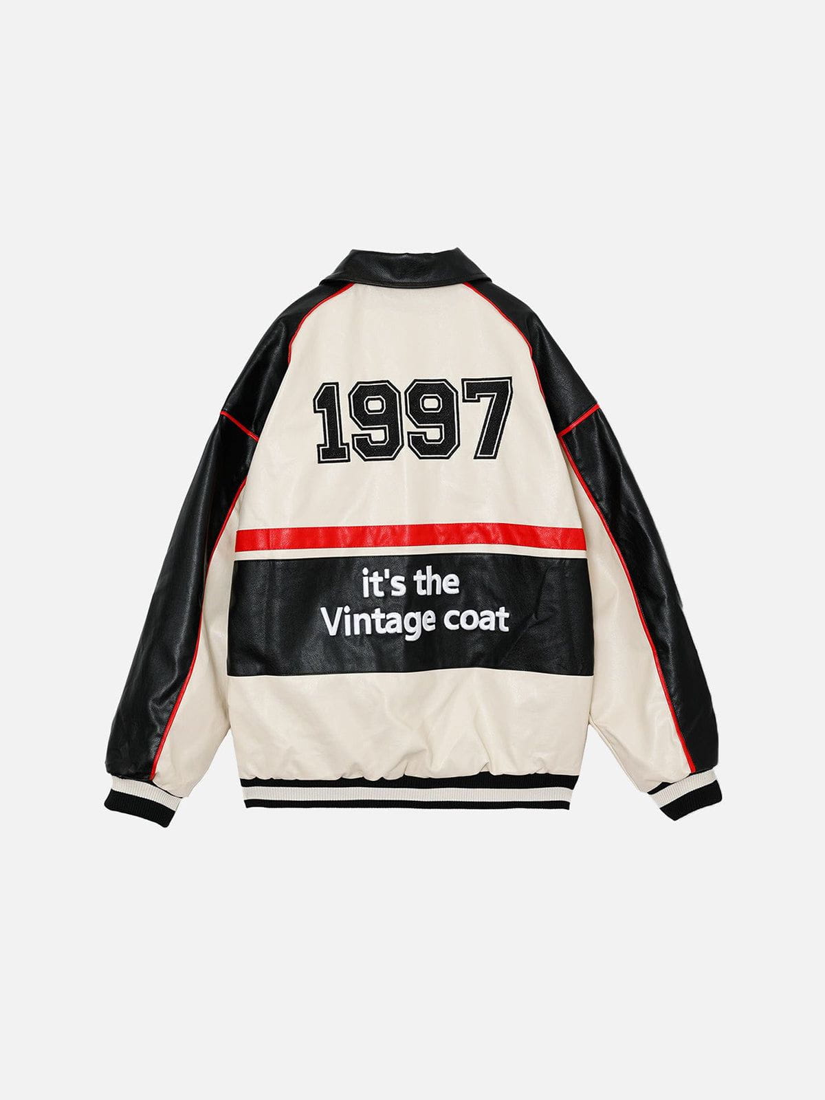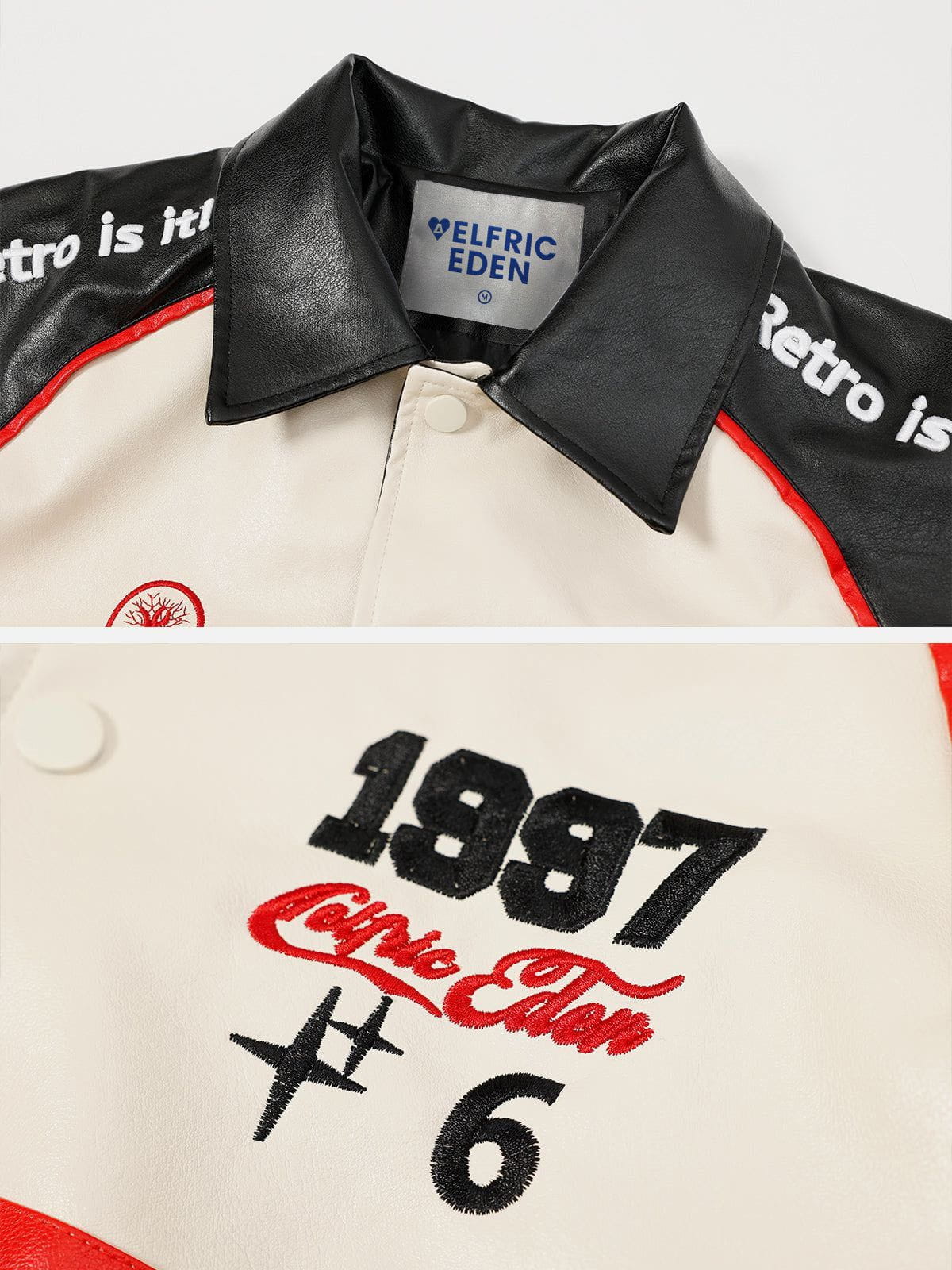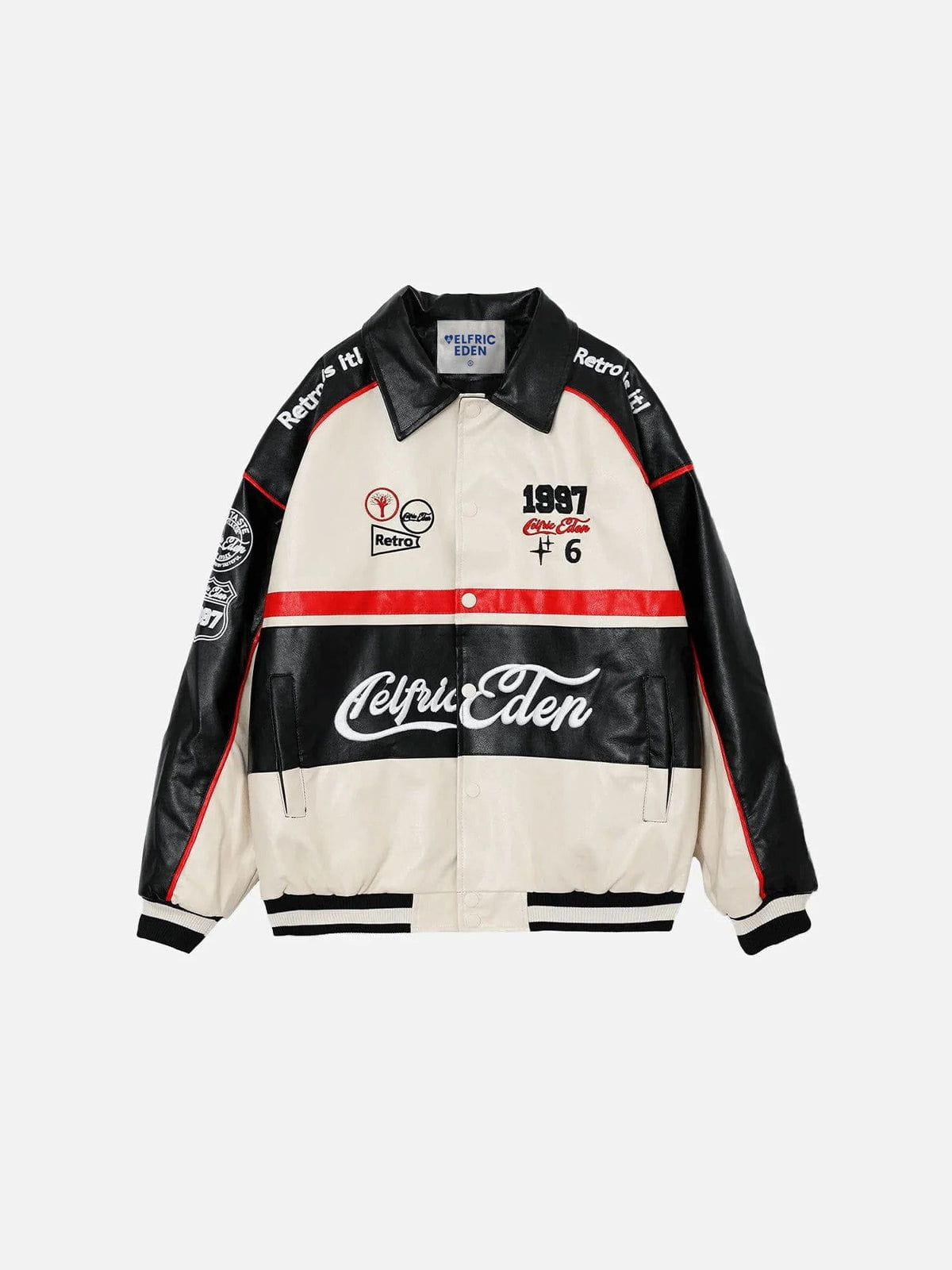 Channel retro racing vibes in this color-block jacket. Crafted from faux leather for a bold edge, it blends vintage aesthetics with motorsport-inspired flair—perfect for making a statement on and off the street.