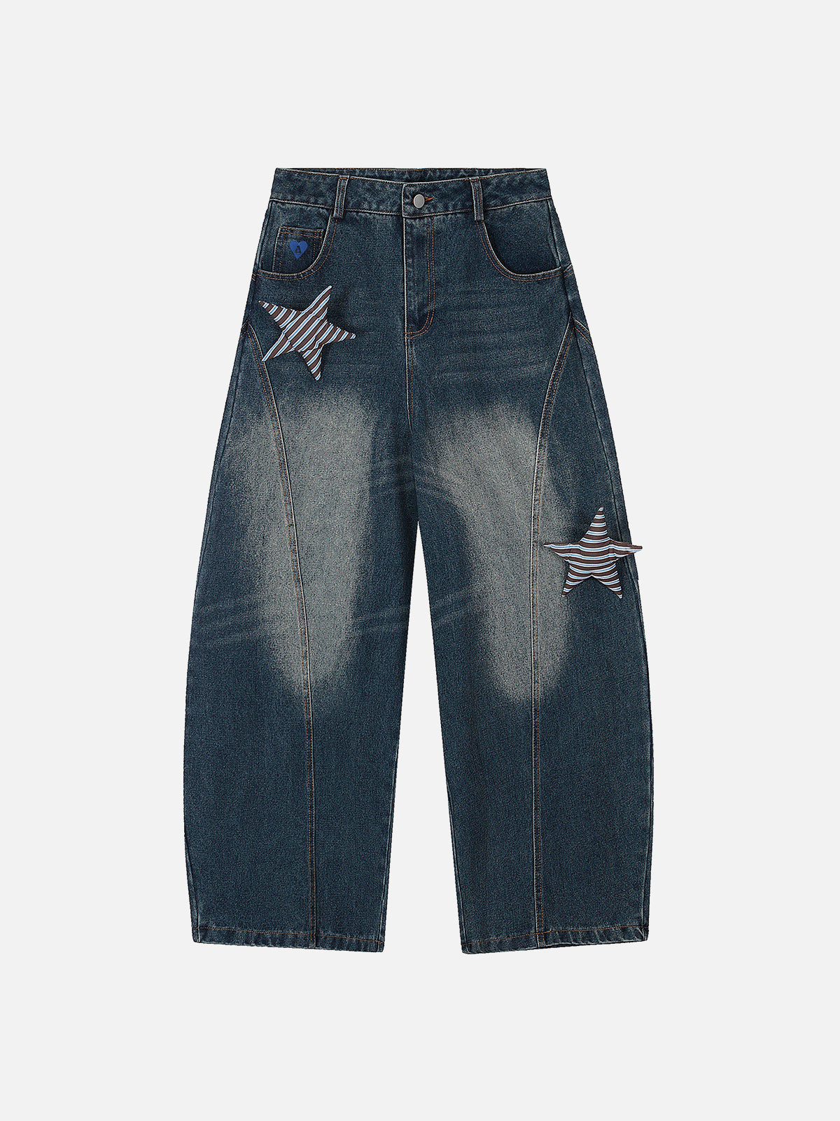 Fvshya 3D Star Super Baggy Barrel Jeans