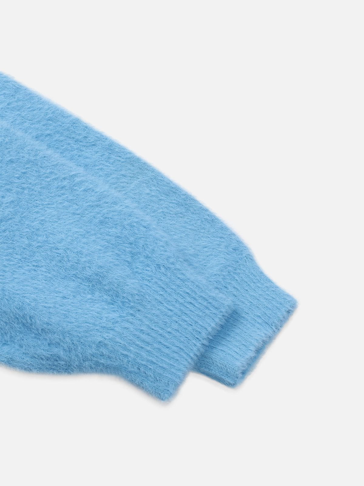 Bright red and cream collide with fun vibrancy in this soft, short sweater embellished with a playful apple pattern on the chest. The dense knit brings a warm touch, and the loose fit with ribbed edges makes it naturally cozy and comfortable. It's easy to show off your sweet and playful style.