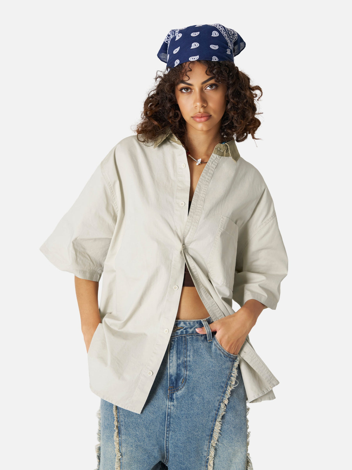A wardrobe essential reimagined — this classic shirt features a contrasting collar for a bold yet clean look, breaking up the monotony with just the right edge. Its chest patch pocket adds utility without compromising simplicity. Ideal for effortless everyday style with a twist.
