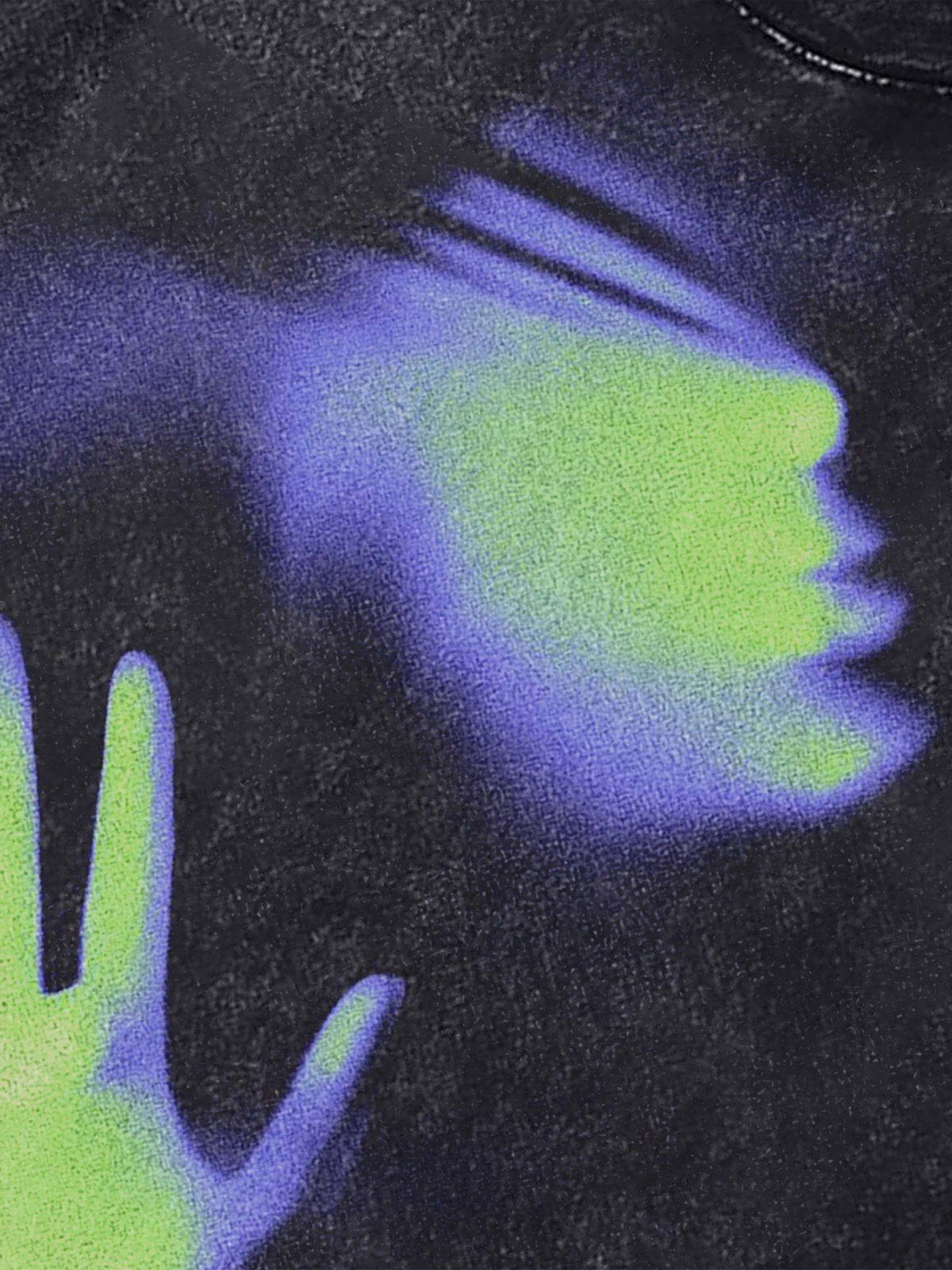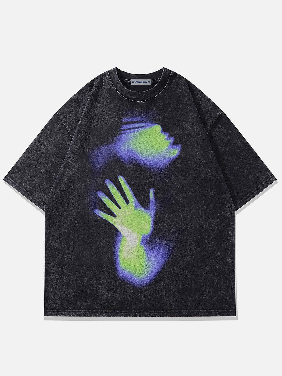 Fvshya's Blurring Palm Print Tee presents a mysterious and abstract beauty in condensed form. On this T-shirt, light and shadows intertwine with the silhouette of a hand, creating a unique pattern on the washed fabric. This condensed design evokes illusions from dreams, full of surreal charm. The washed fabric gives the T-shirt a soft touch while enhancing its overall texture.
