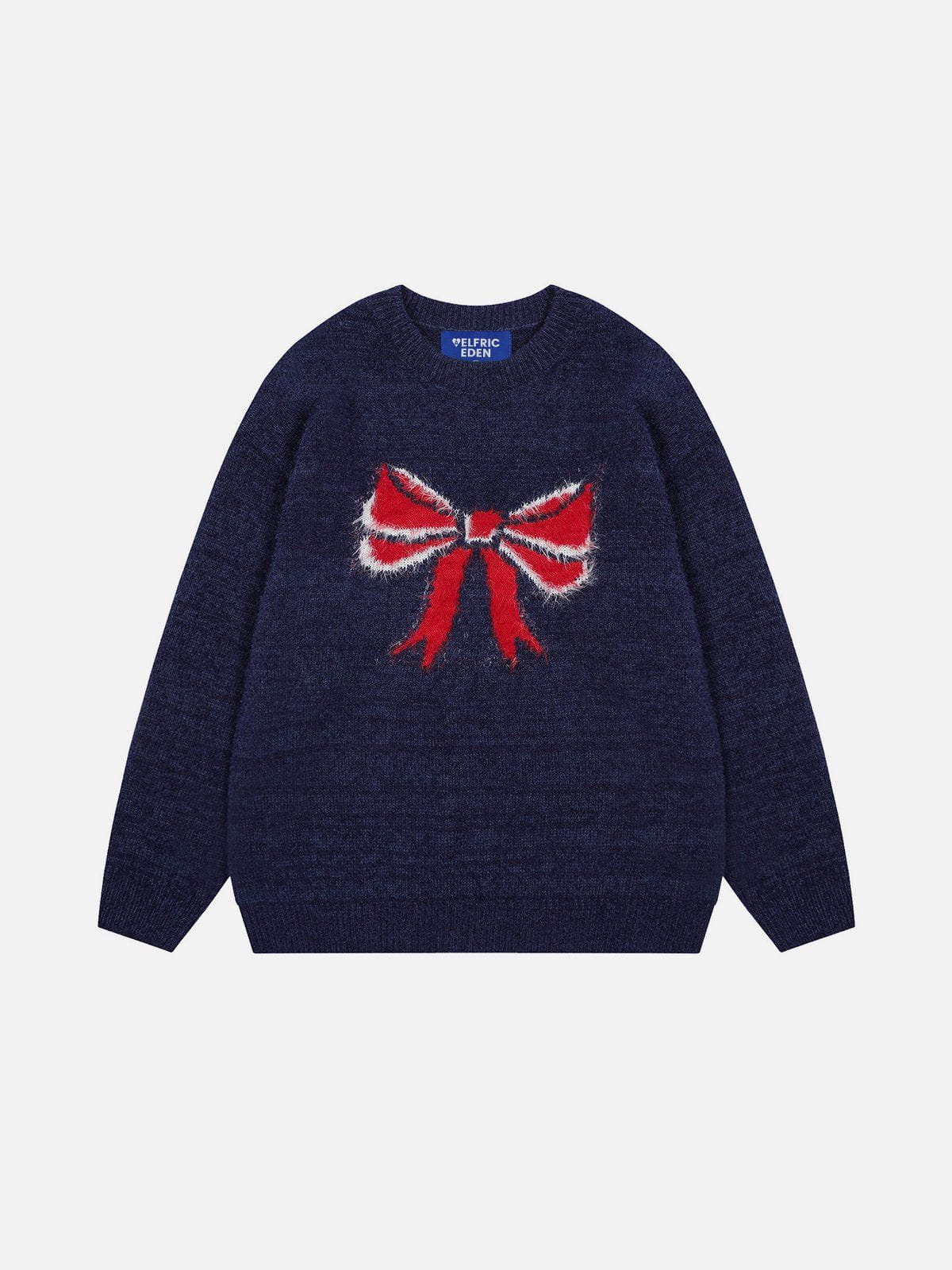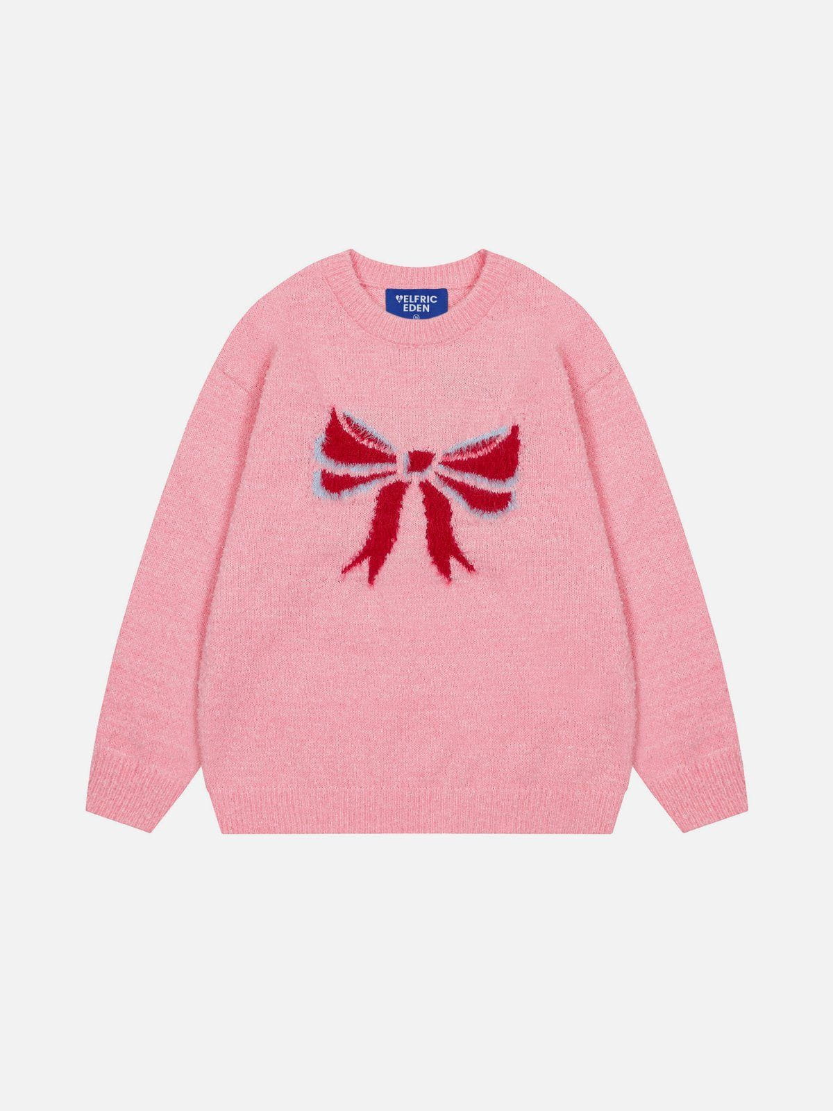 This bow jacquard sweater features playful bow patterns, creating a cozy and cheerful style. Its soft texture ensures comfort, making it perfect for casual outings. You’ll love how effortlessly it brightens up your look!