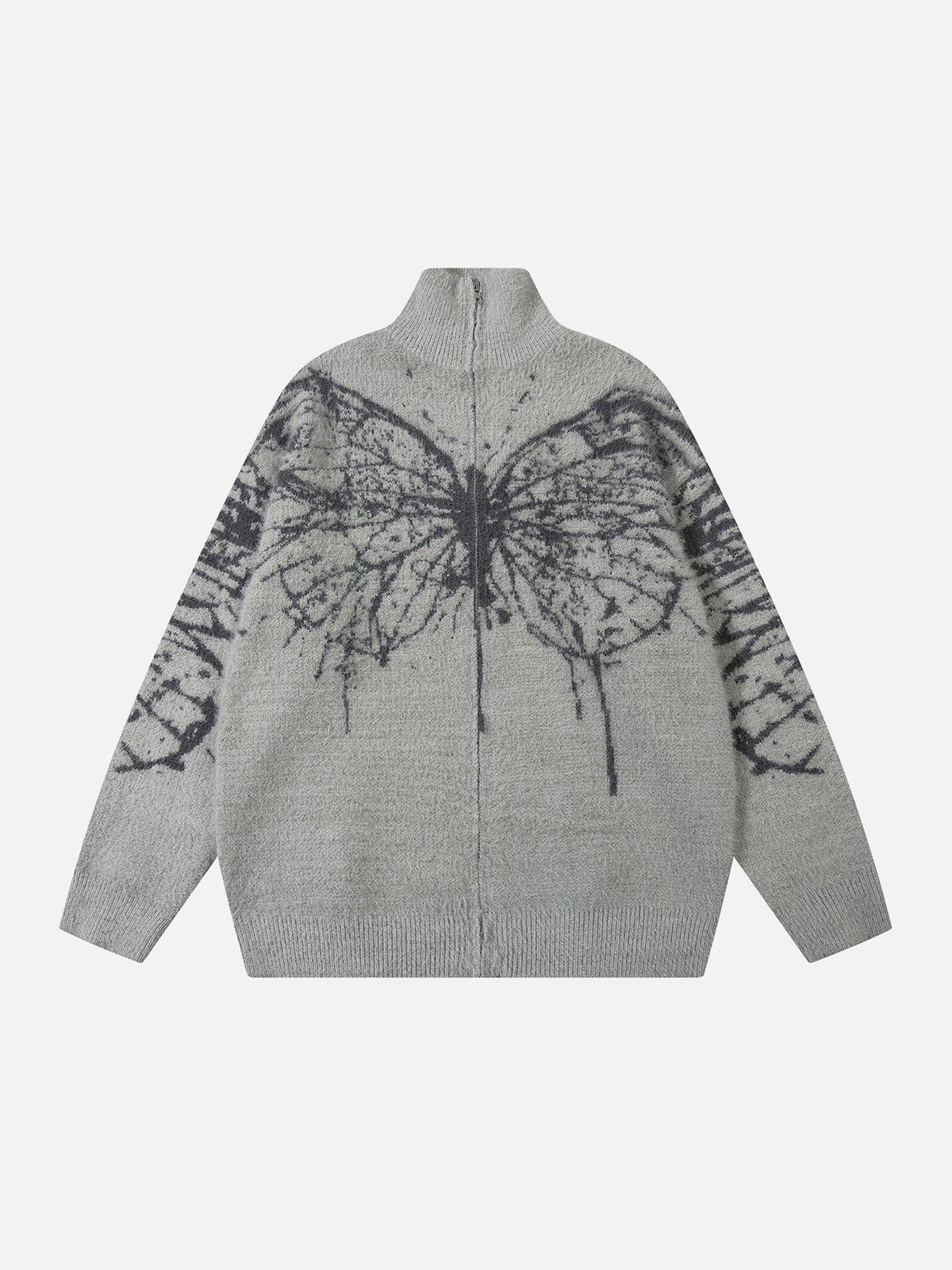 The striking butterfly print on this cardigan makes you feel like a butterfly 🦋, spreading your wings as you put it on. The high collar accentuates your impressive head-to-shoulder ratio. What are you waiting for? Unfurl your wings and soar freely!