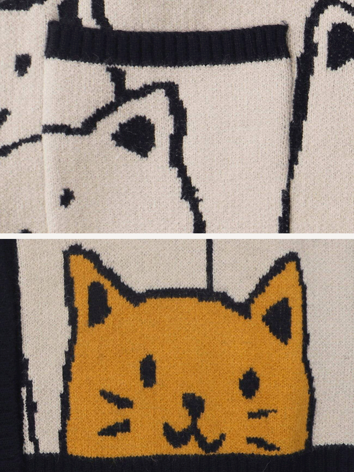 Fvshya Cartoon Cat Graphic Knit Cardigan