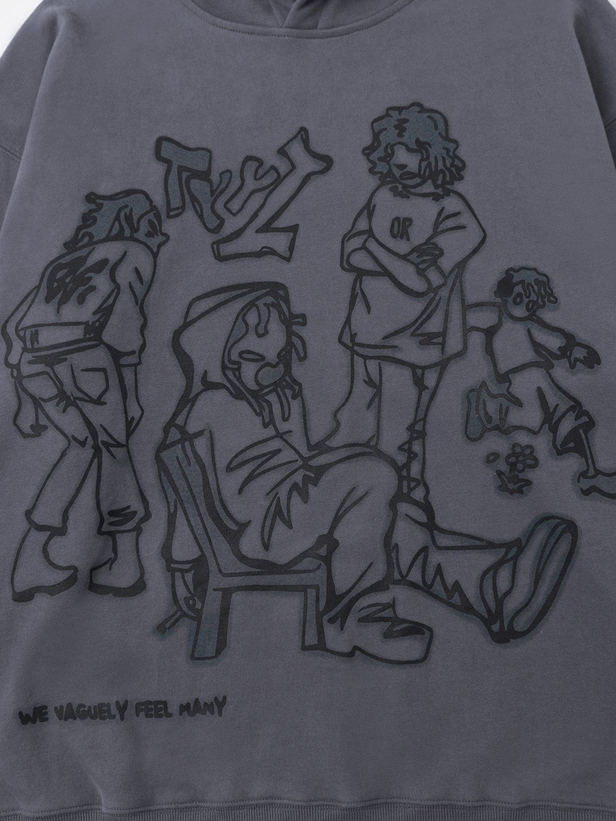 Fvshya Cartoon Line Character Print Hoodie