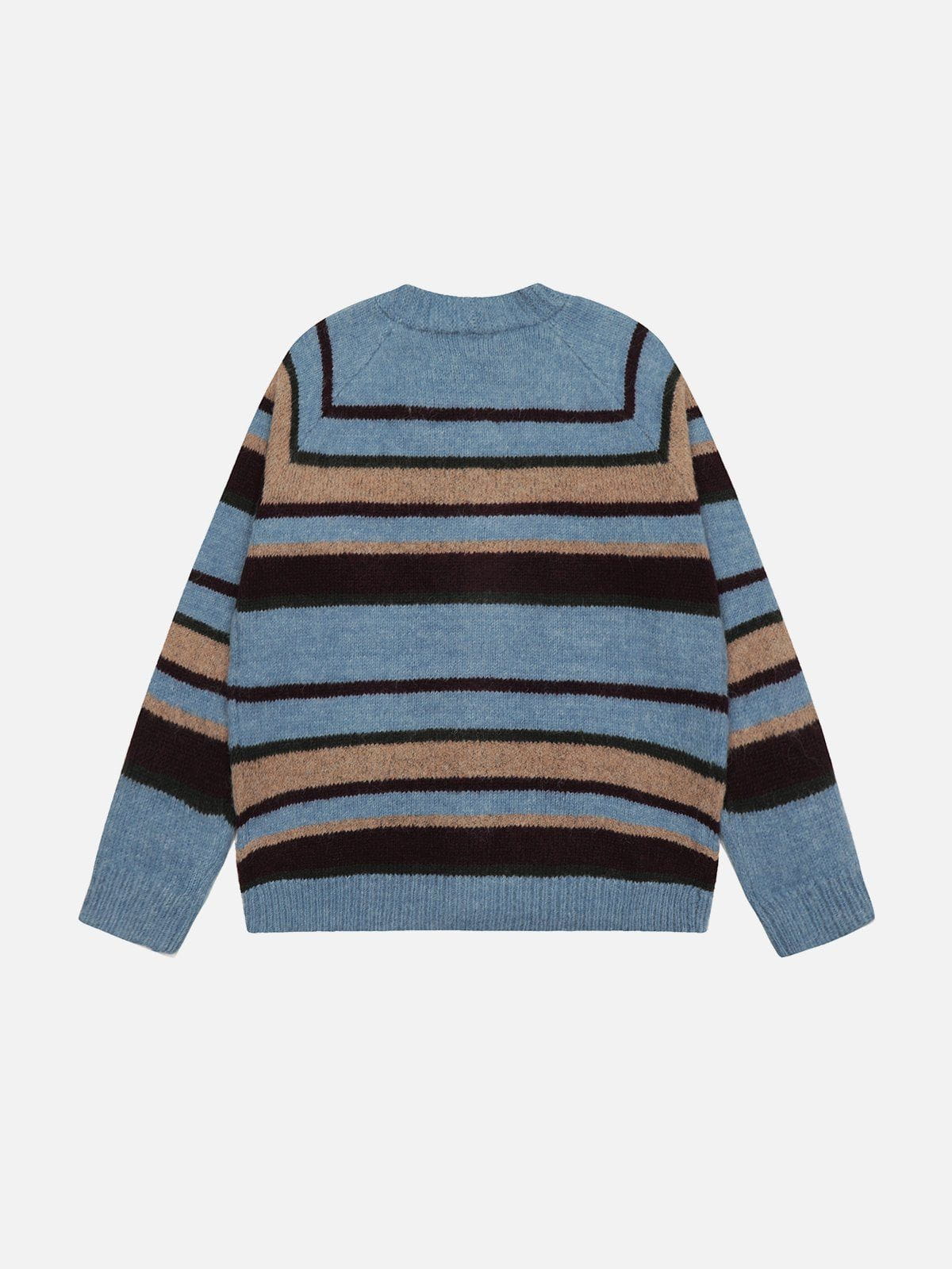 Bold stripes, vintage vibes and a relaxed fit - this cardigan is the perfect blend of style and comfort. It can be easily layered and styled, making it a must-have piece for colder weather. Don't miss out - buy it now and own the season in style!