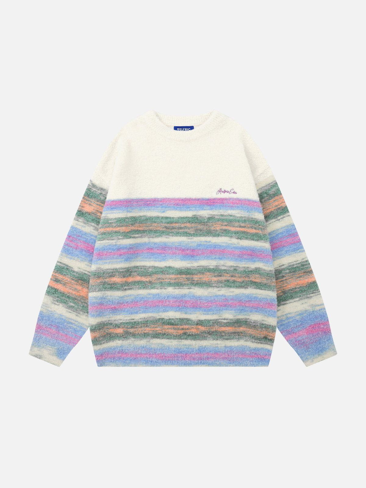 This colorful stripe sweater is sure to make a statement. The unique stripe design adds a pop of color to any outfit. Made with high-quality materials, this sweater is both comfortable and stylish.