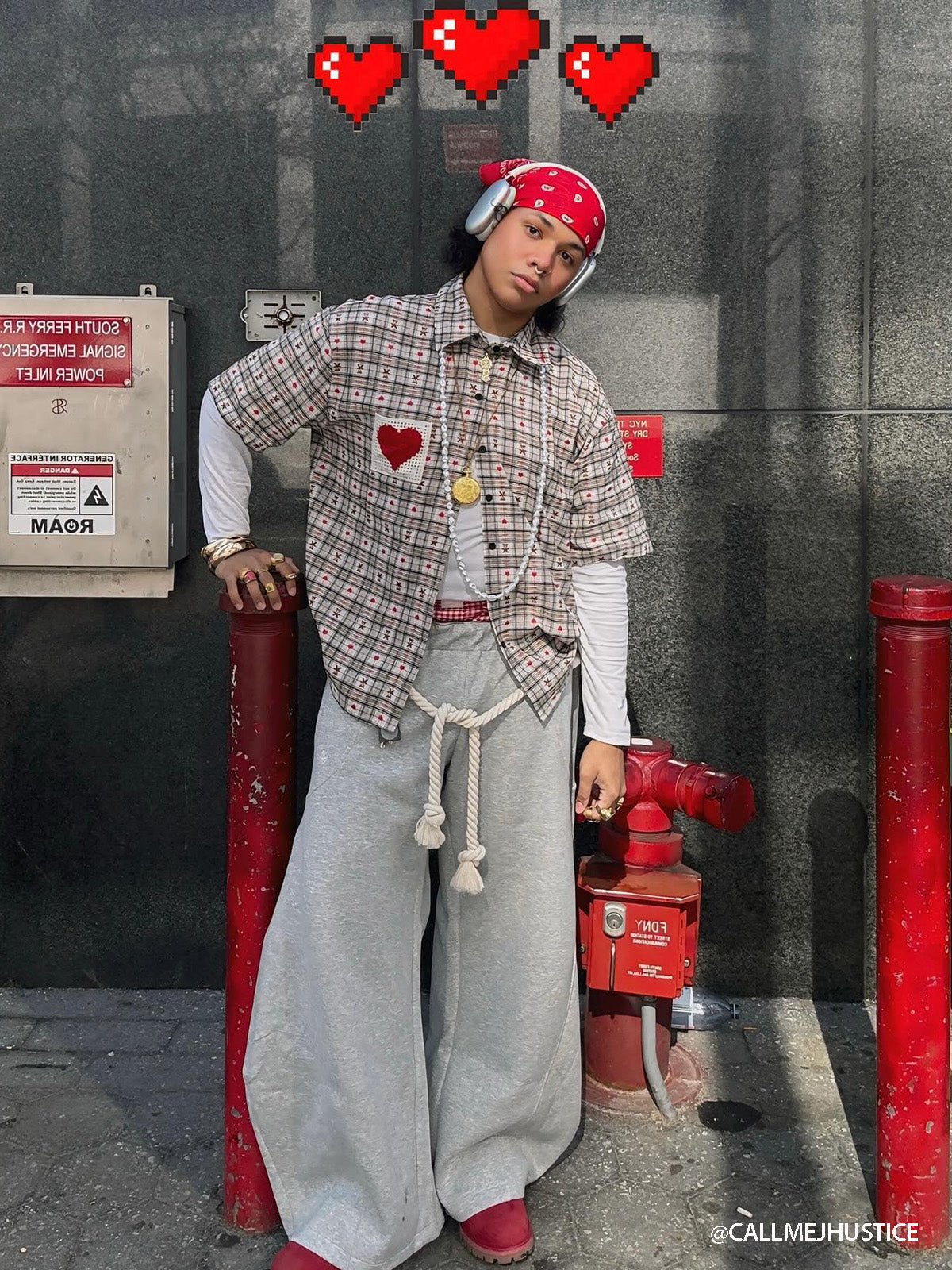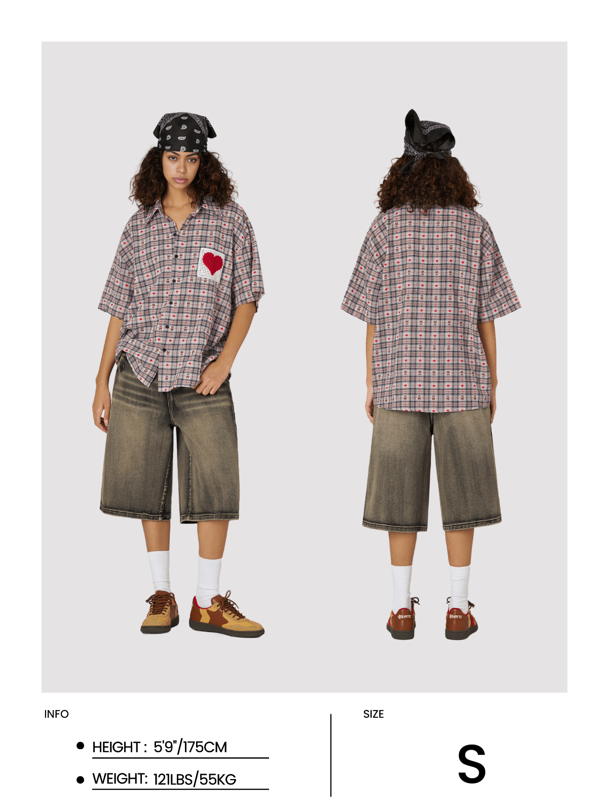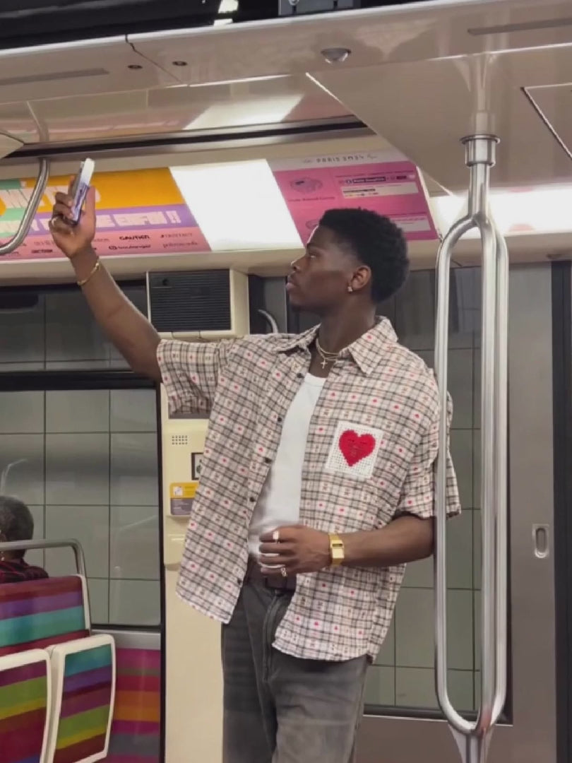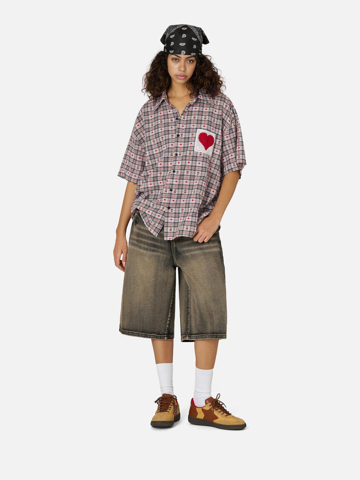 Fvshya Crochet Heart Pocket Plaid Shirt