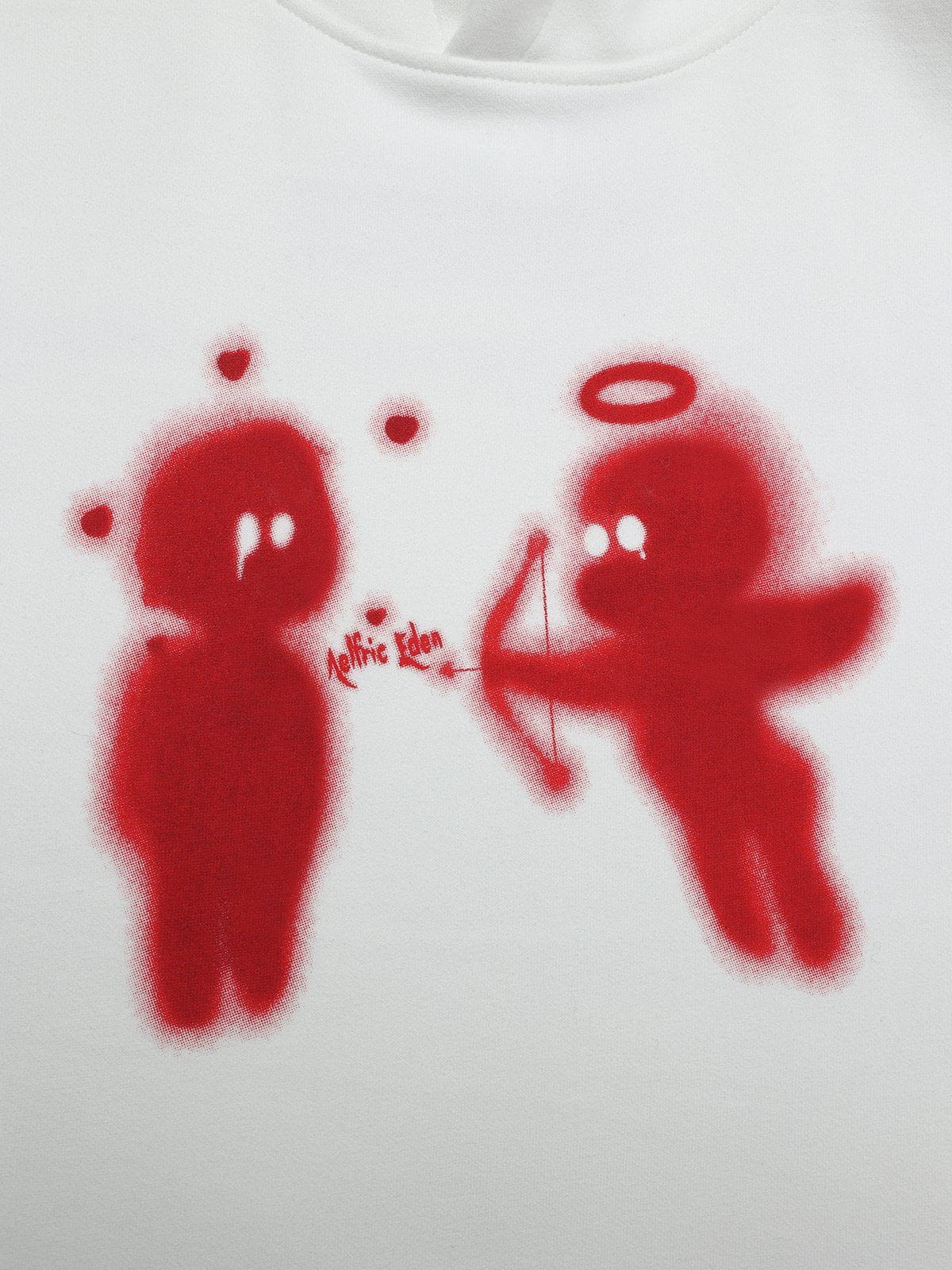 A playful hoodie showcasing a unique red graphic of Cupid shooting an arrow of love. Made from soft, breathable fabric for all-day comfort, it features a cozy hood and kangaroo pocket. The relaxed fit adds casual charm, making it a standout piece for any wardrobe.