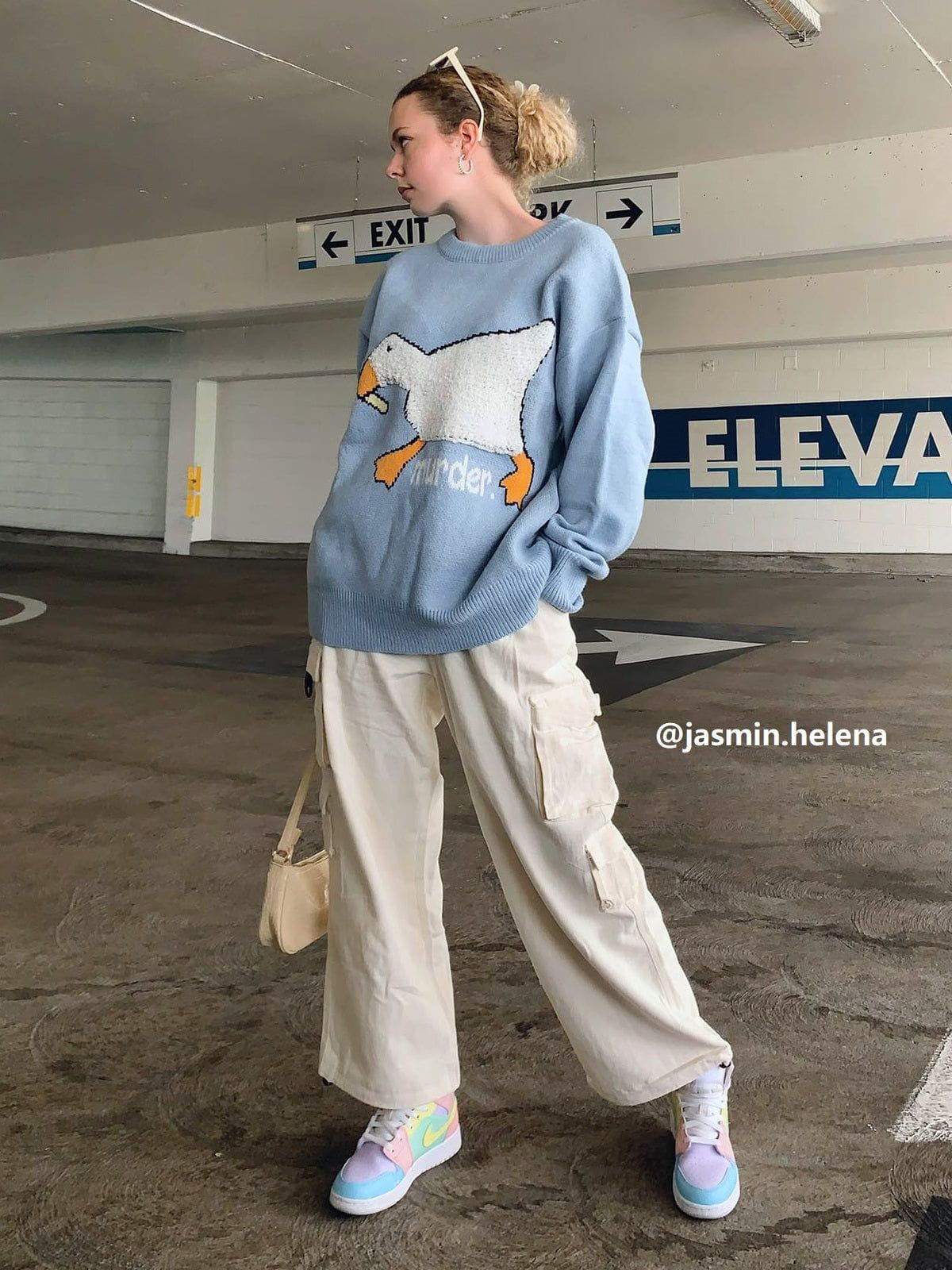 Fvshya Cute Murder Goose Pattern Knit Sweater