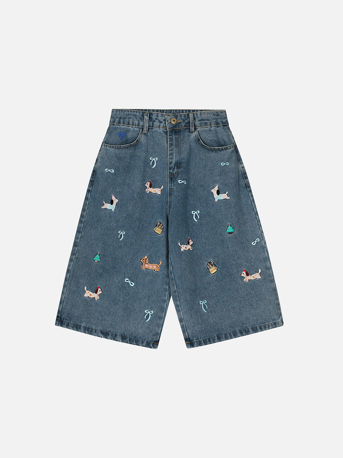 Add a playful twist to your street fit with these Dachshund Embroidery Longline Jorts. Featuring an extra-long silhouette and an embroidered sausage dog graphic, they’re equal parts cool and quirky — perfect for laid-back summer statements.
