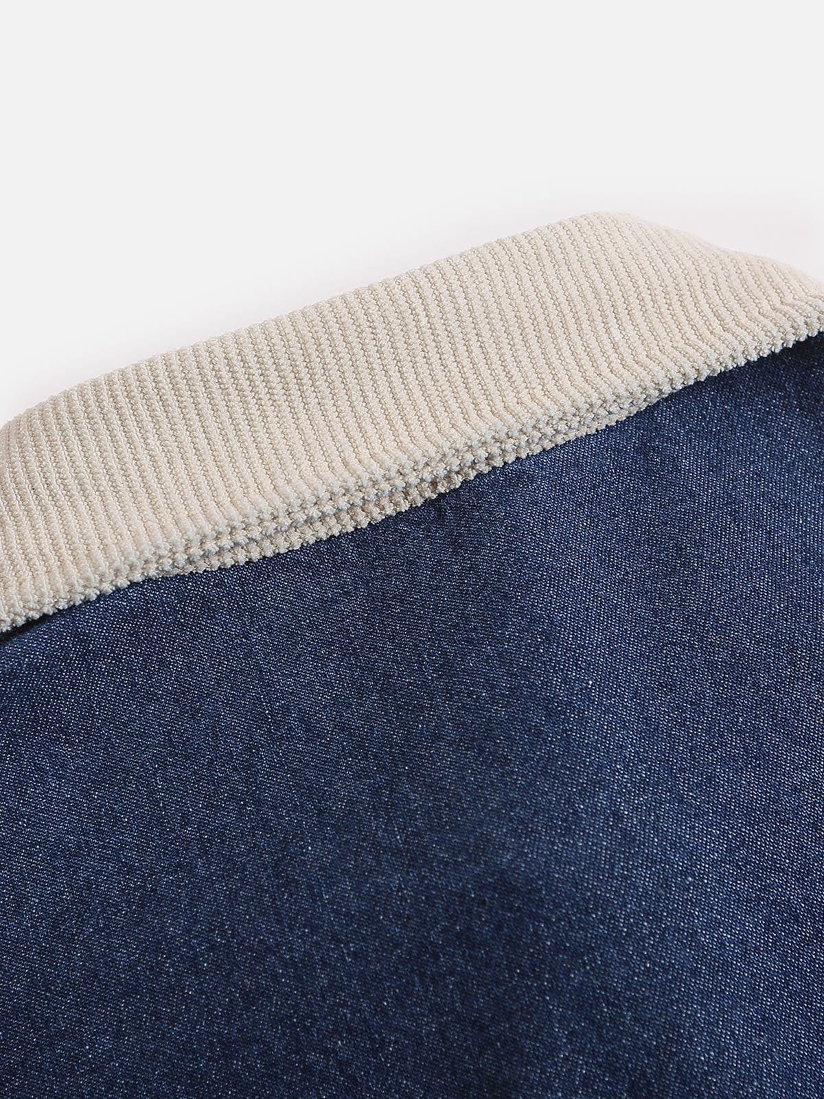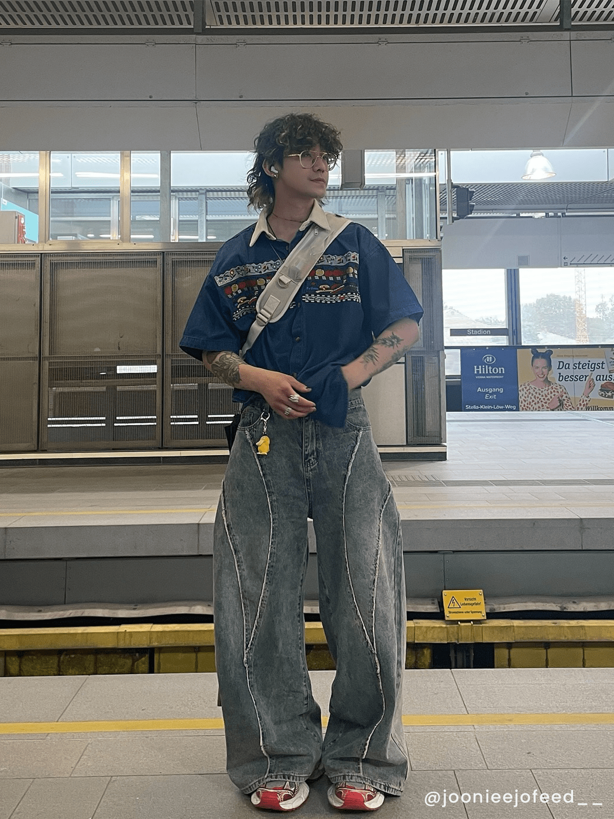 The shirt is like an abstract and vivid canvas, intertwining blue and white as if capturing the tranquil sky of a summer day. Its fabric is soft yet sturdy, gently caressing your skin like a summer breeze. When you put it on, it feels like wearing a masterpiece by a master artist, with every stitch meticulously crafted. This piece is adorned with a white polo collar, adding a touch of elegance and freshness to its design.