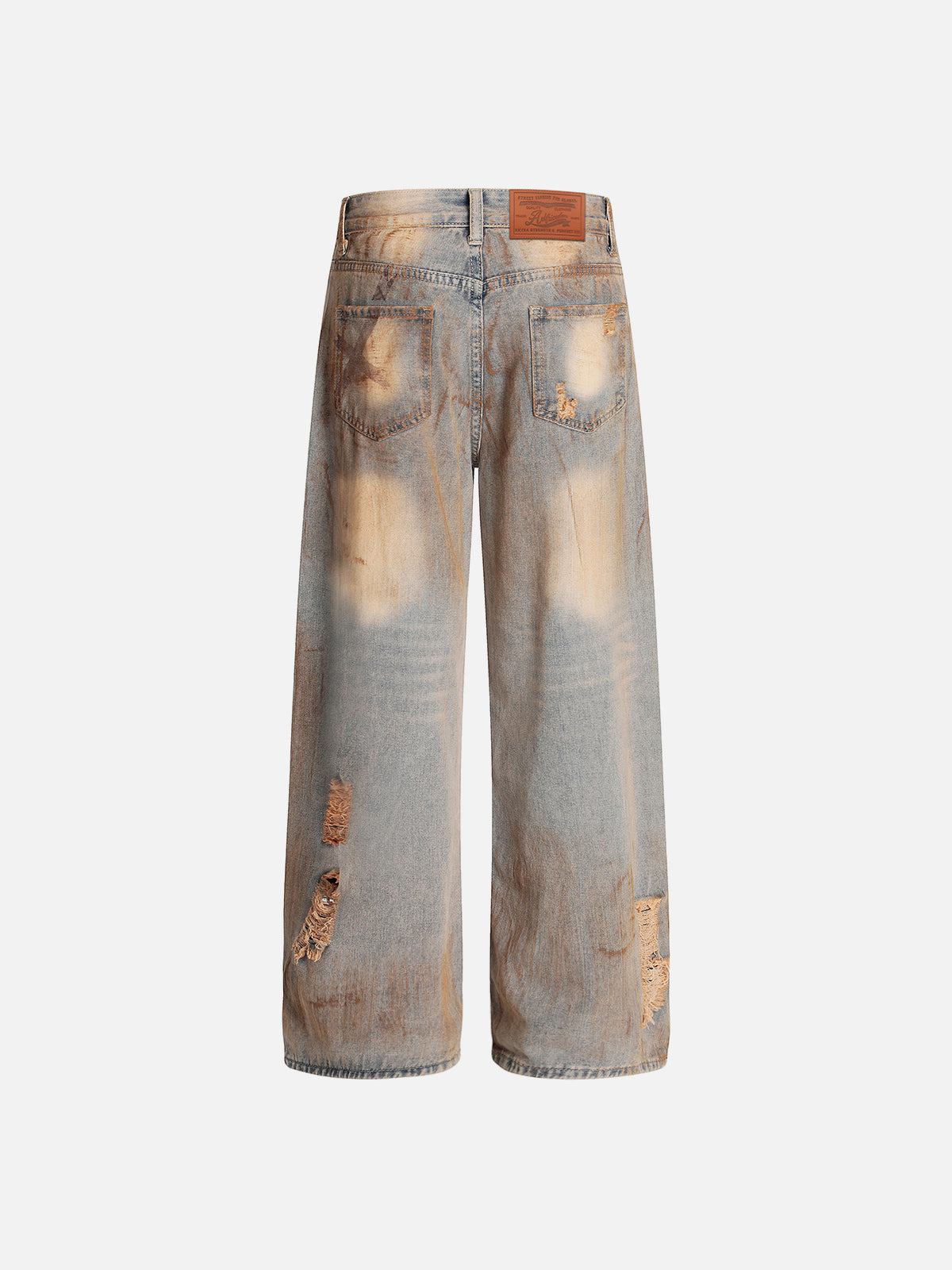 Feature a unique dirt-inspired wash and raw distressed details throughout, delivering a vintage, rugged vibe. The ultra-baggy fit gives them a relaxed, street-heavy silhouette that’s easy to style and hard to ignore.