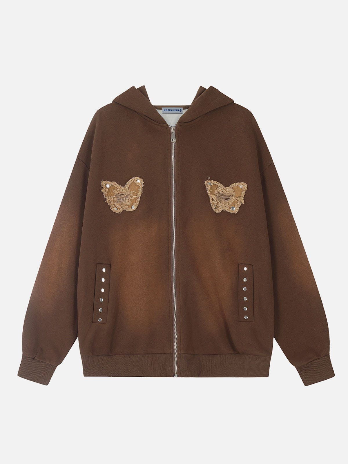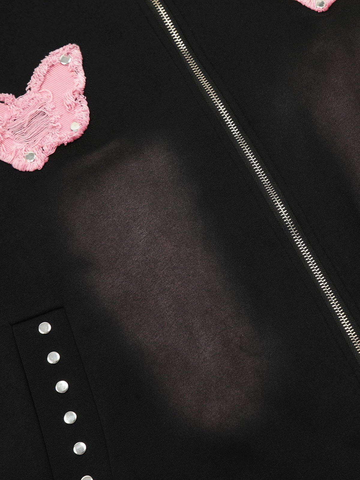 Fvshya Distressed Butterfly Washed Zip Up Hoodie