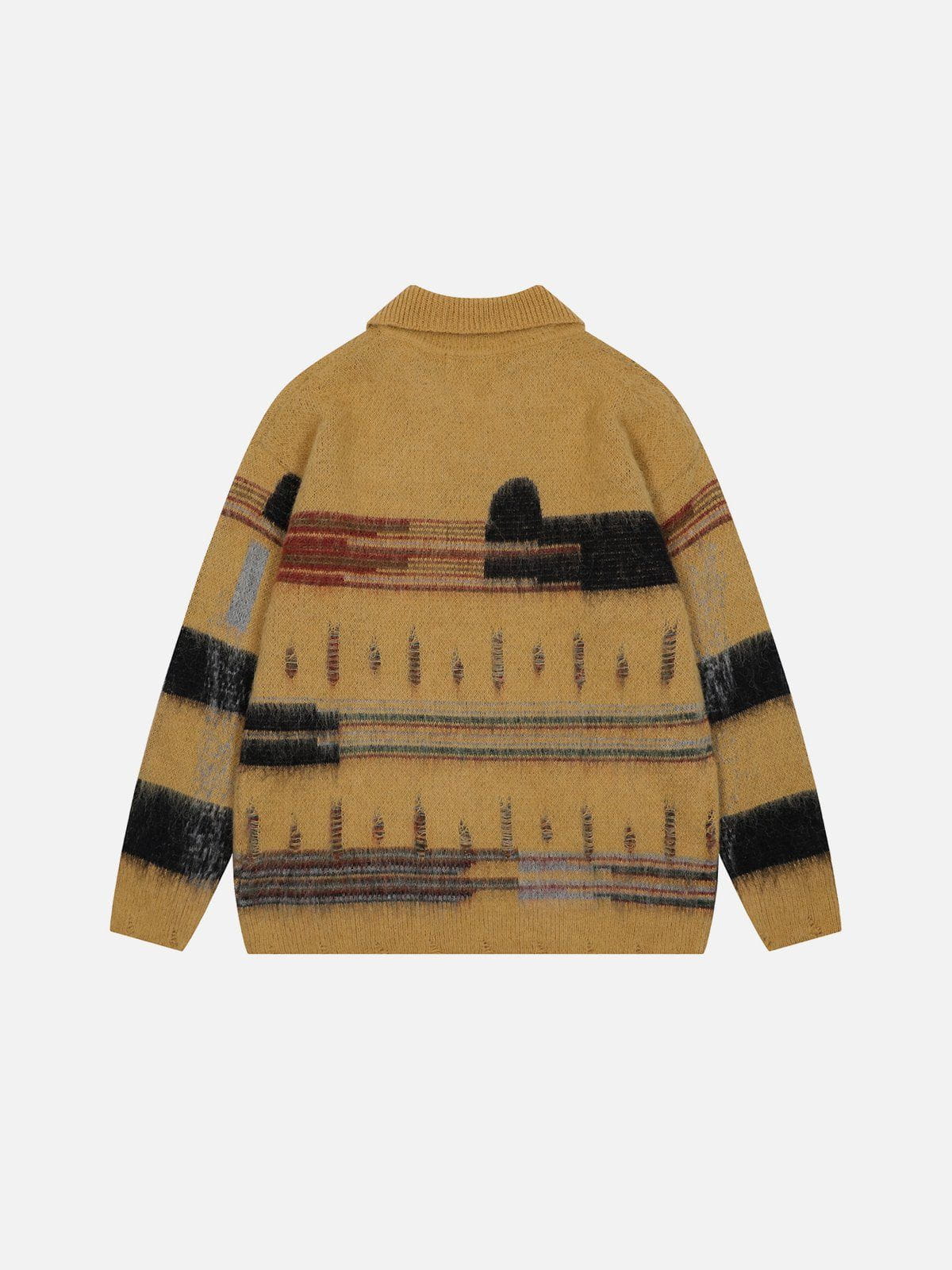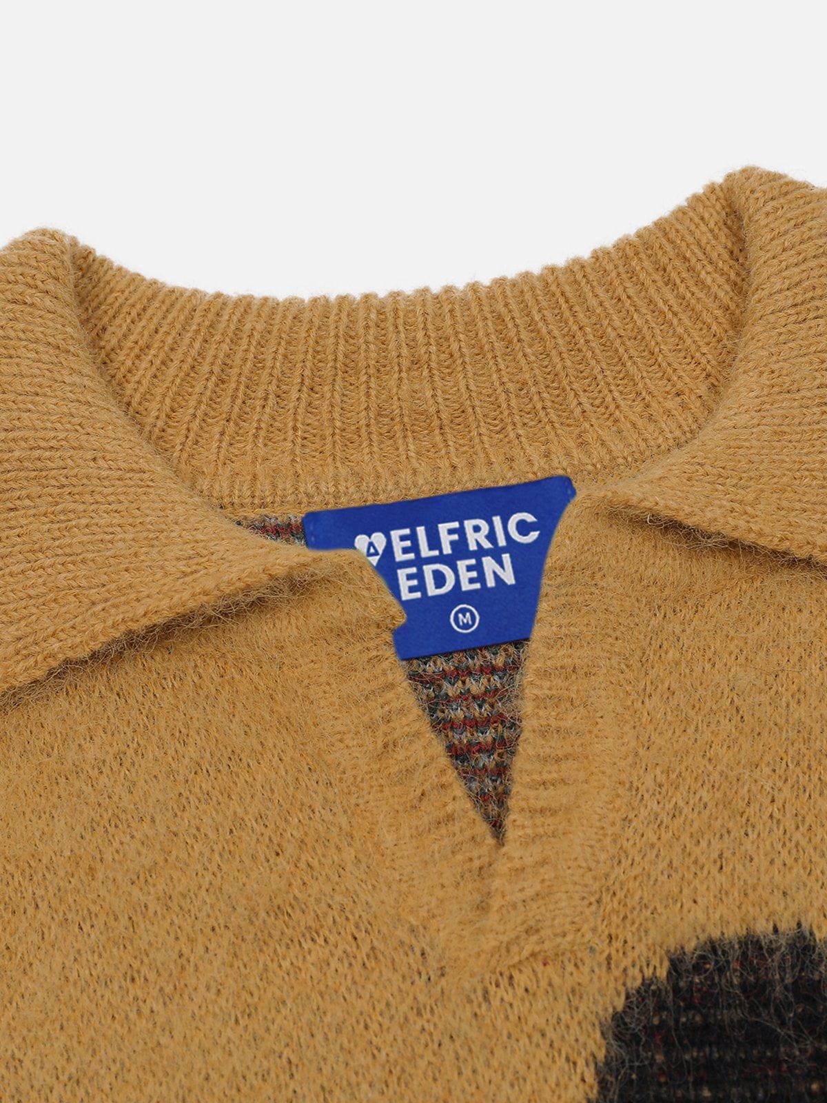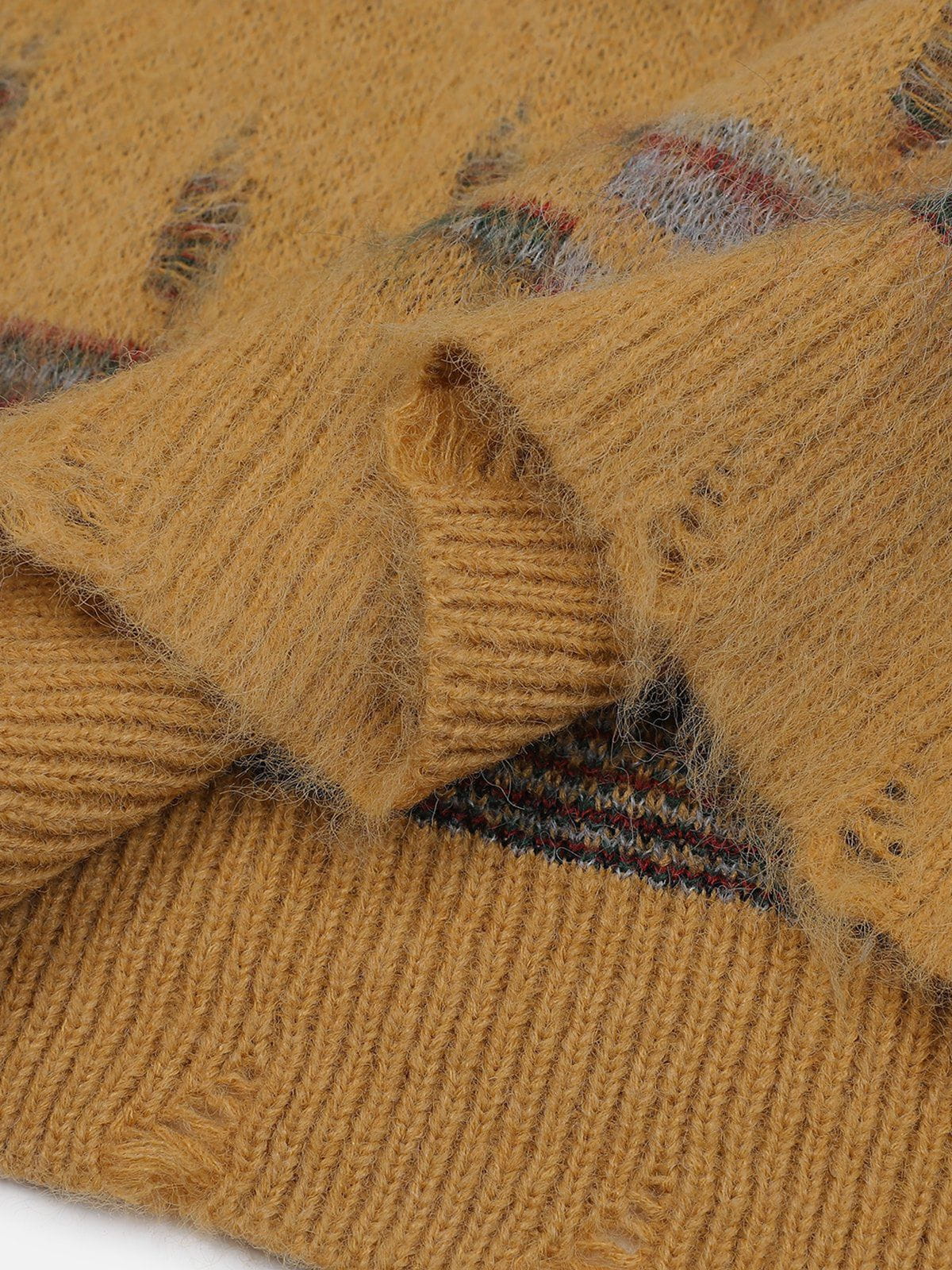 This sweater combines classic polo design with distressed details for a relaxed, vintage-inspired look. Its cozy fabric and unique texture make it a stylish choice for casual outings or layering.