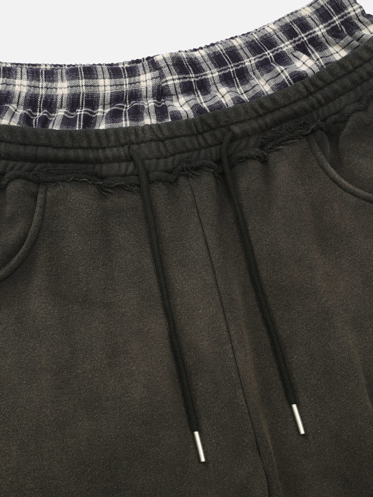 Crafted from 100% cotton, these sweatpants ensure comfort and breathability for everyday wear. Features a layered waistband with a plaid pattern, adding a unique visual element and a nod to vintage styles.
