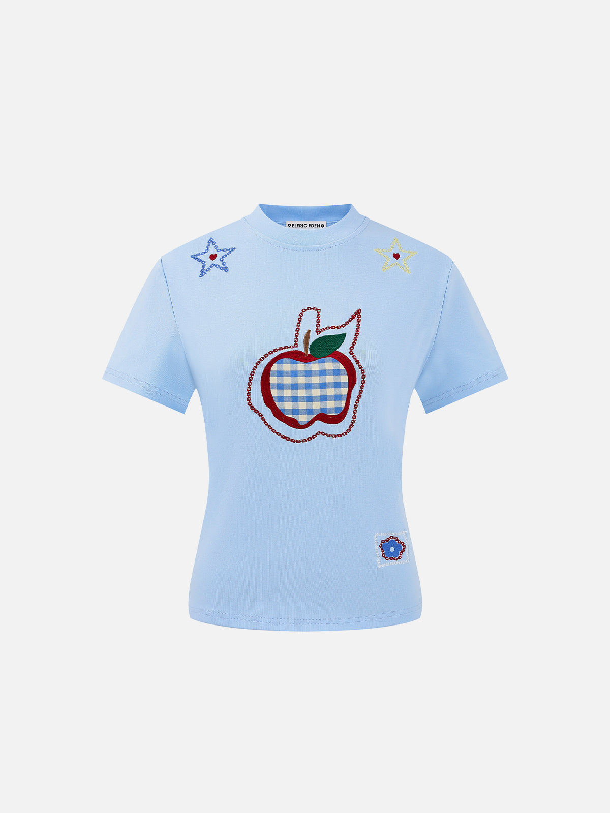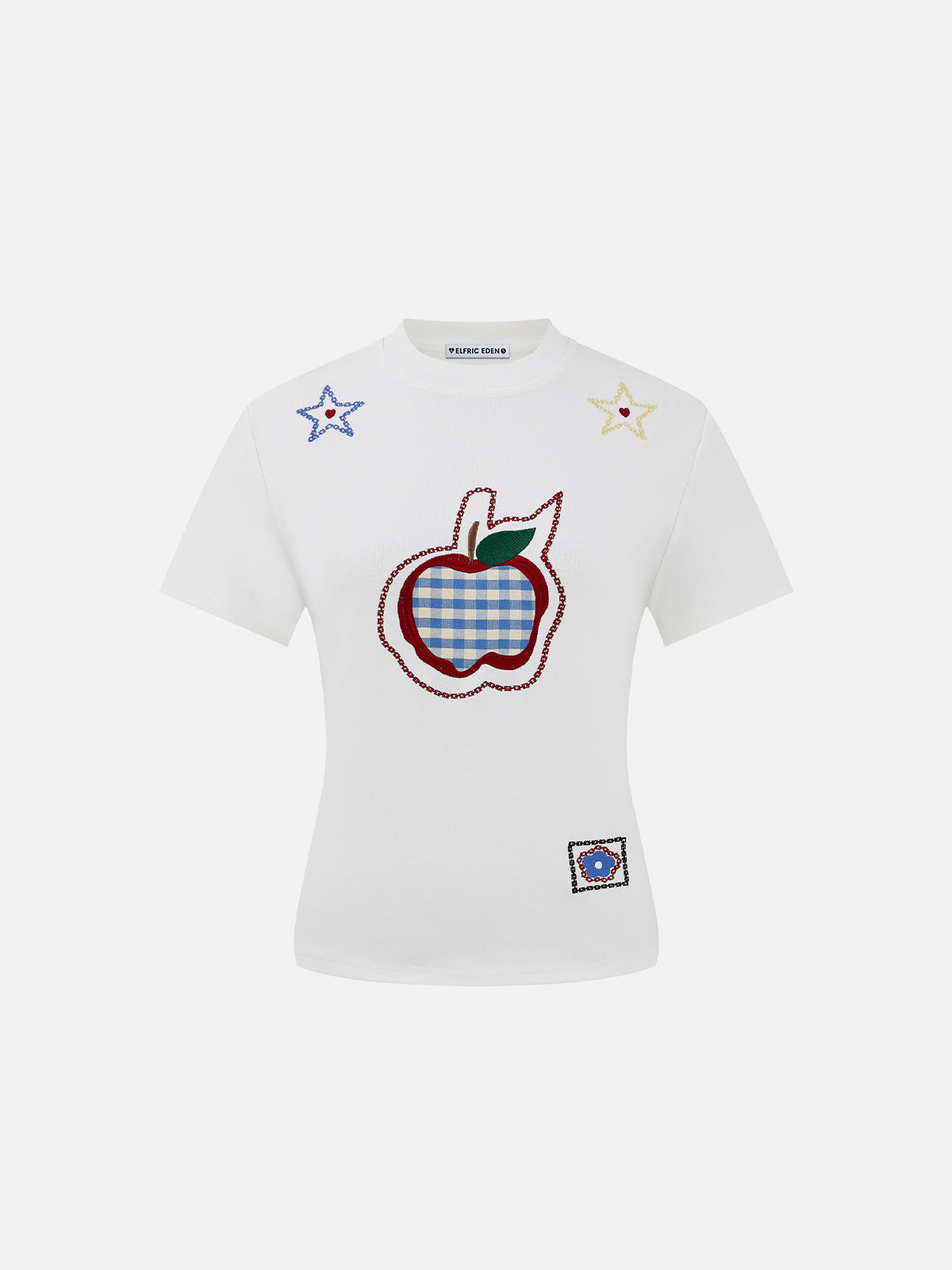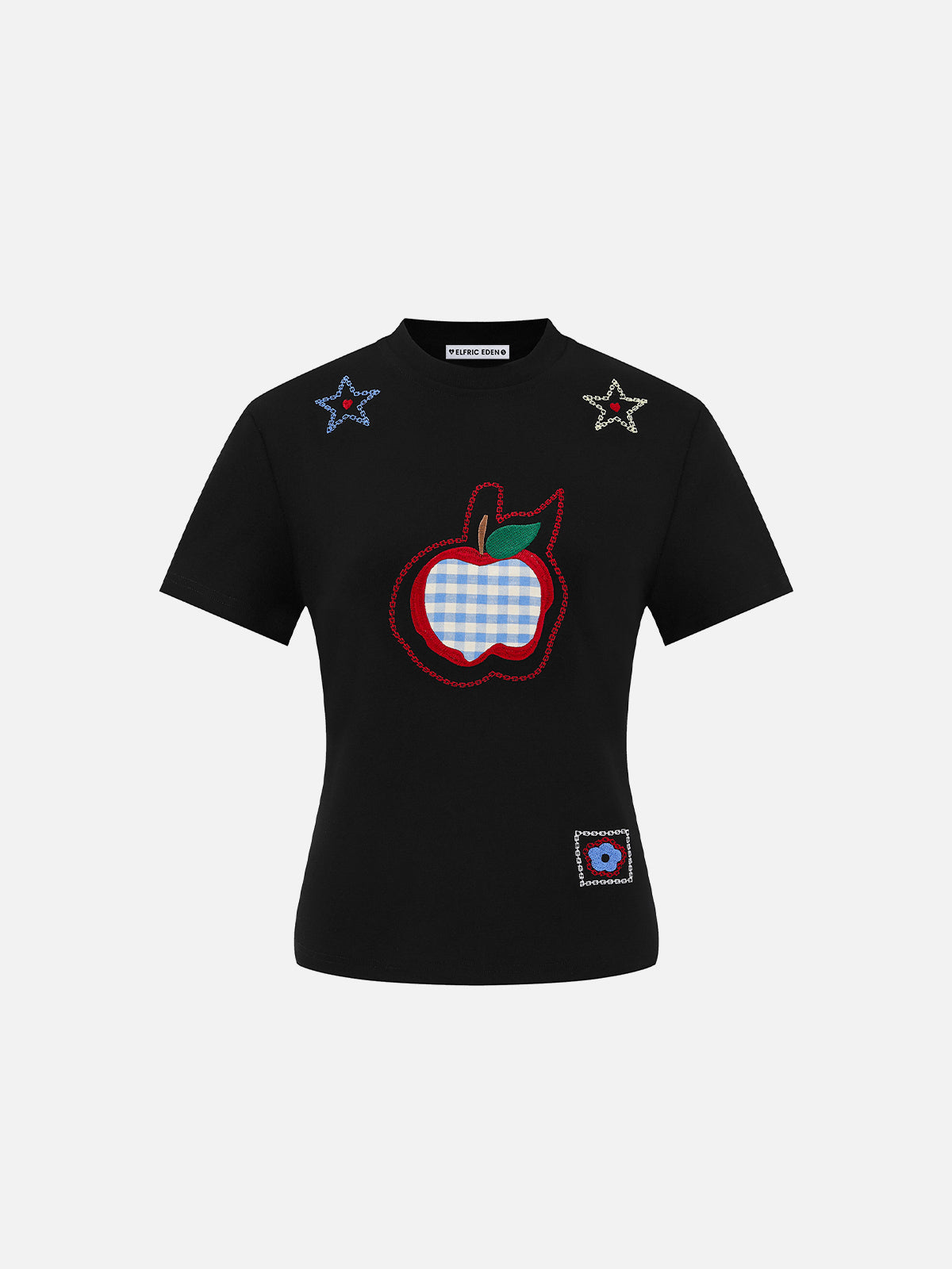 This fitted tee features playful apple-appliqué embroidery, hugs your curves just right, and comes in a range of juicy colors. The perfect summer staple—pairs effortlessly with skirts or pants for an easy, everyday look.