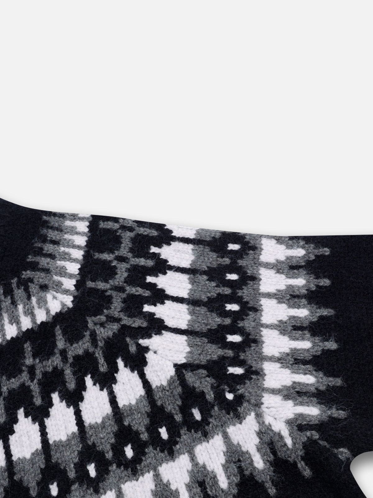 This sweater features a classic Fair Isle pattern, blending traditional design with modern comfort. The intricate knit adds texture and warmth, making it a stylish choice for cooler days.