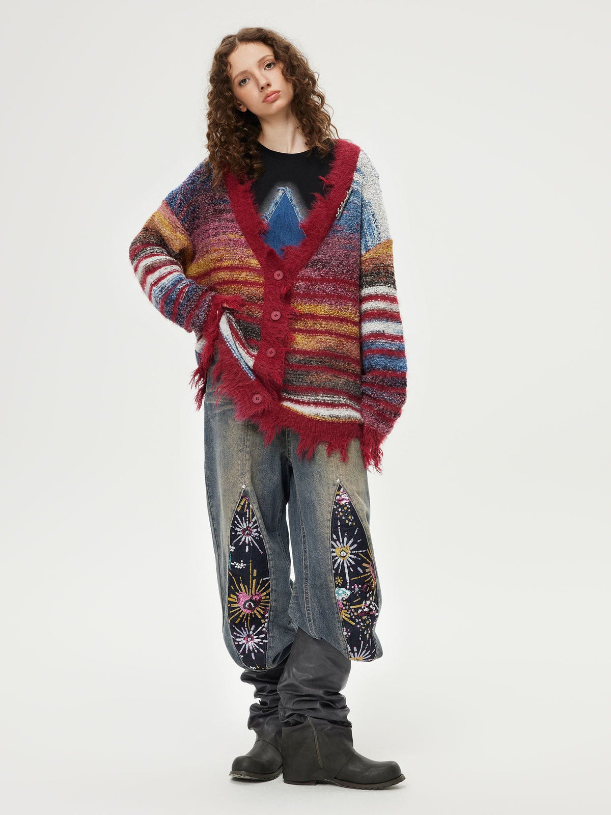 Fvshya Fringe Gradient Pinstripe Cardigan