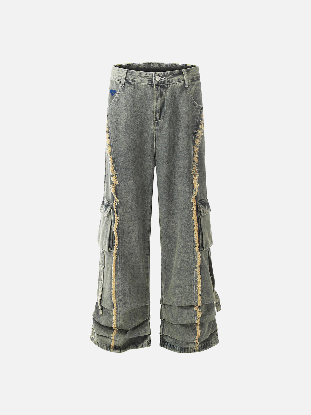 Fvshya Fringe Wrinkle Baggy Jeans