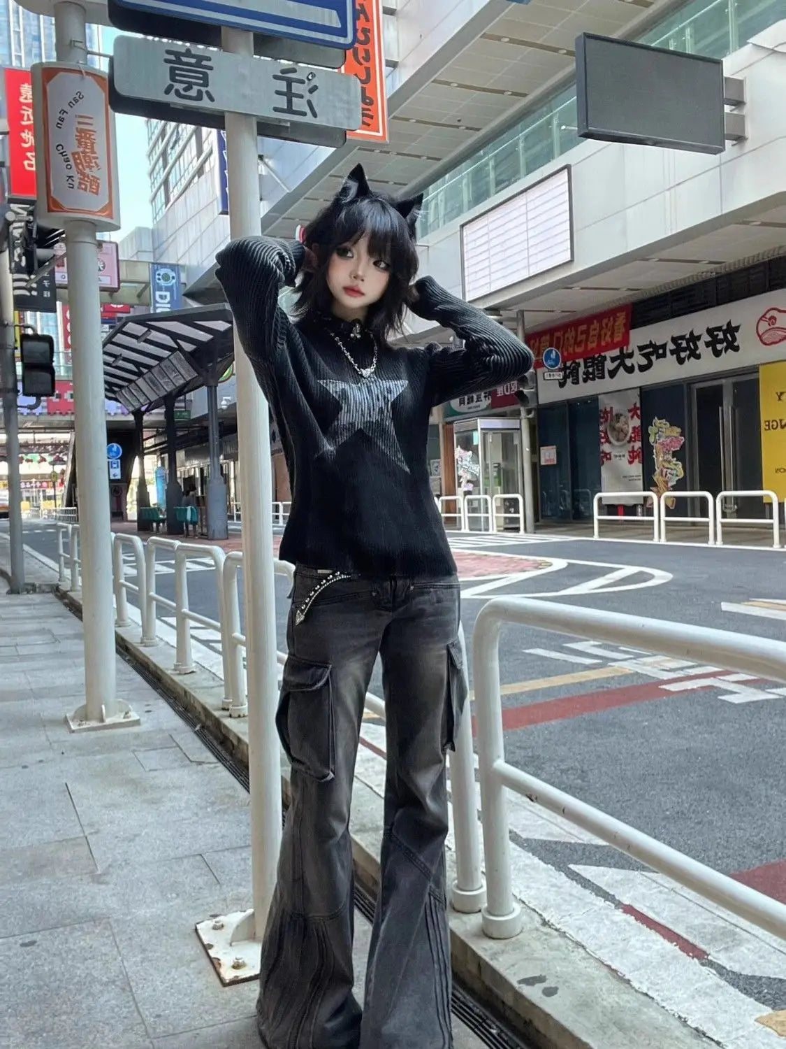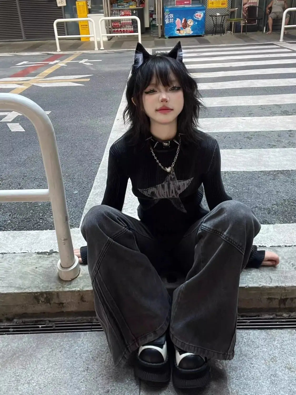 Y2K GRUNGE STAR RIBBED TOP, stilinle fark yaratman için tasarlandı.