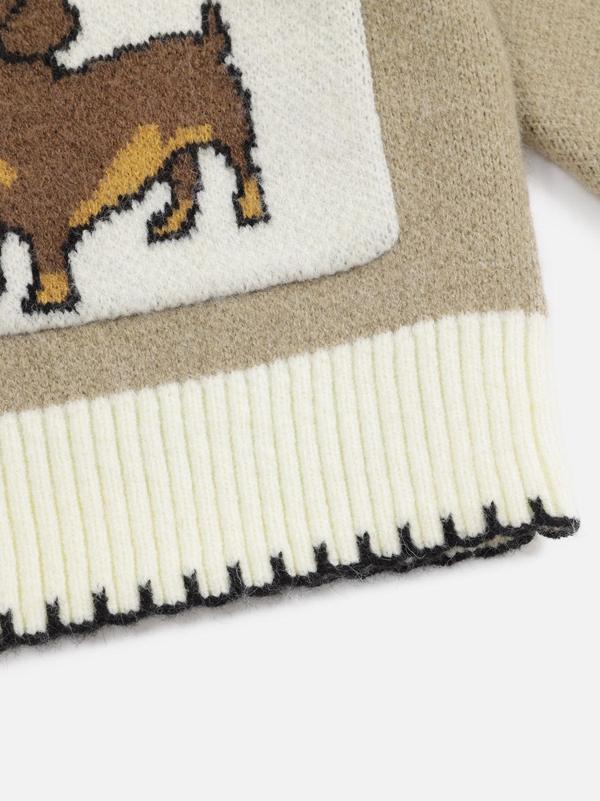 Fvshya Hand Drawn Dachshund Jacquard Cardigan