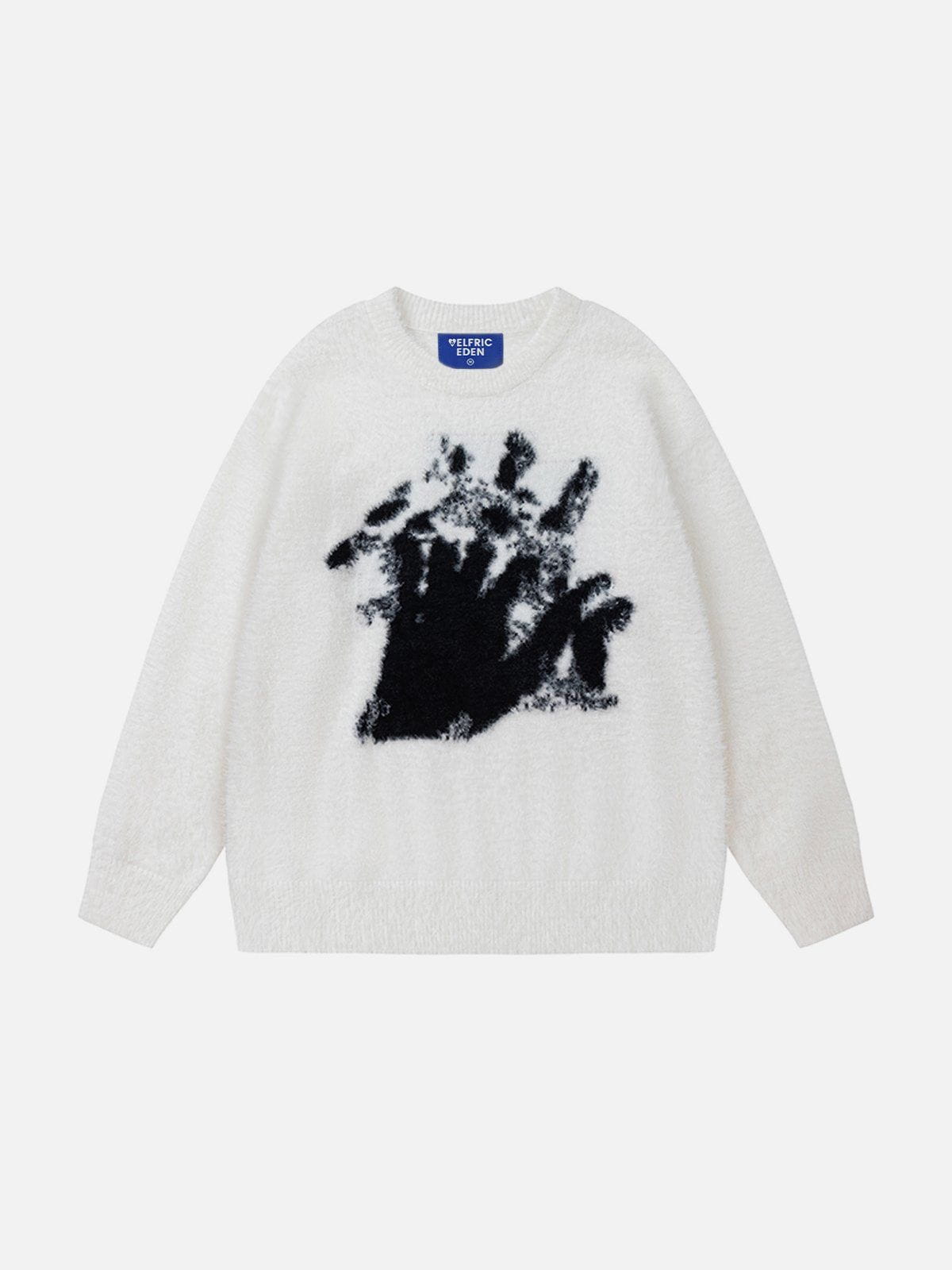 This sweater features a striking hand graphic, blending bold design with cozy comfort. The unique pattern brings an edgy touch to your everyday style.