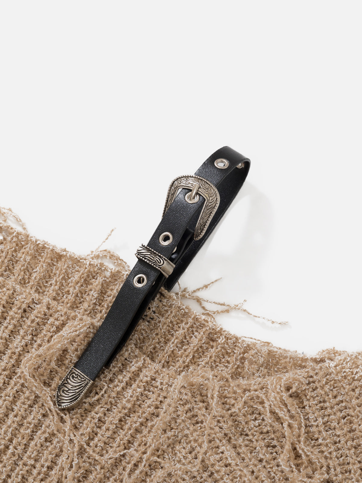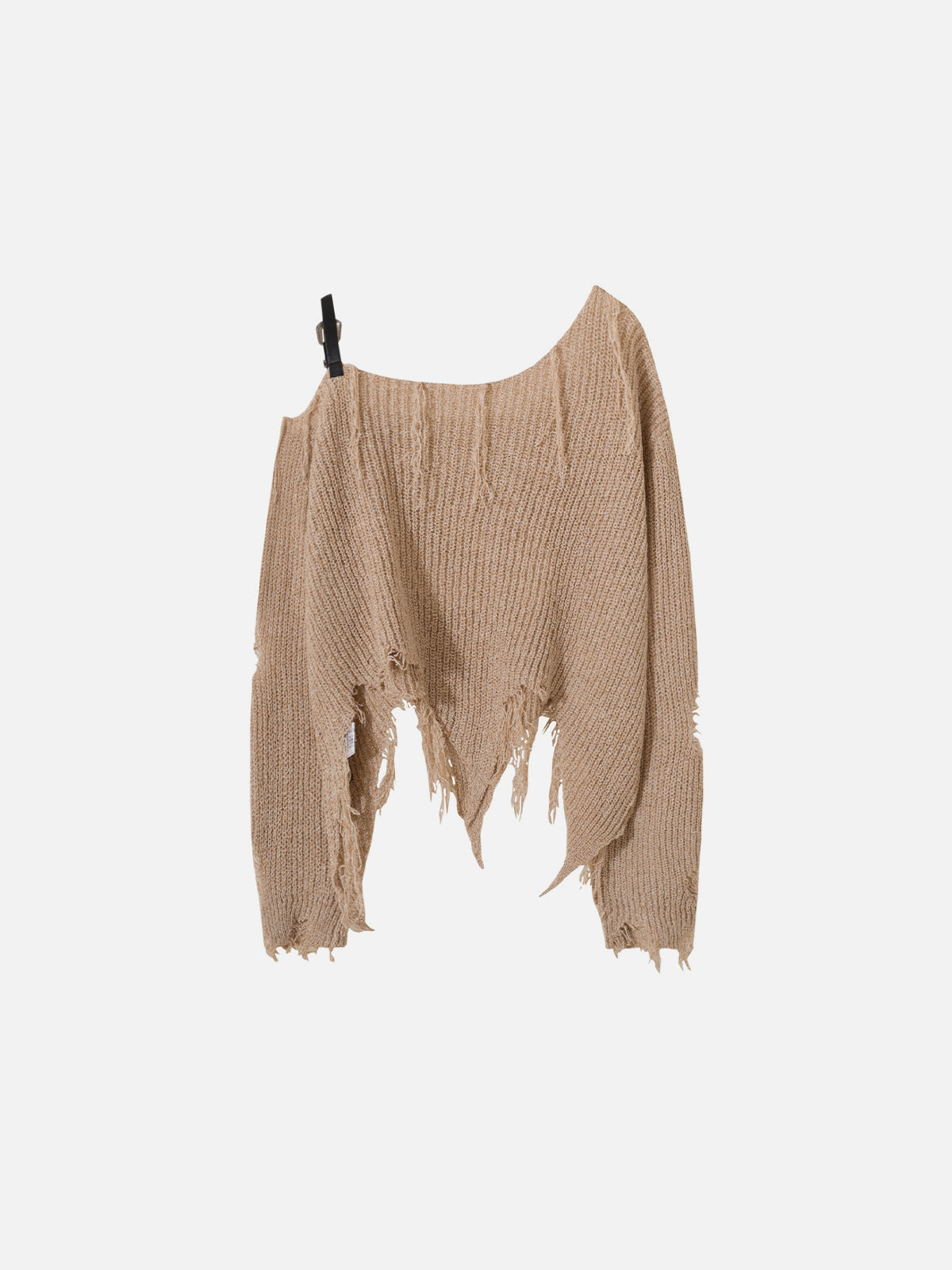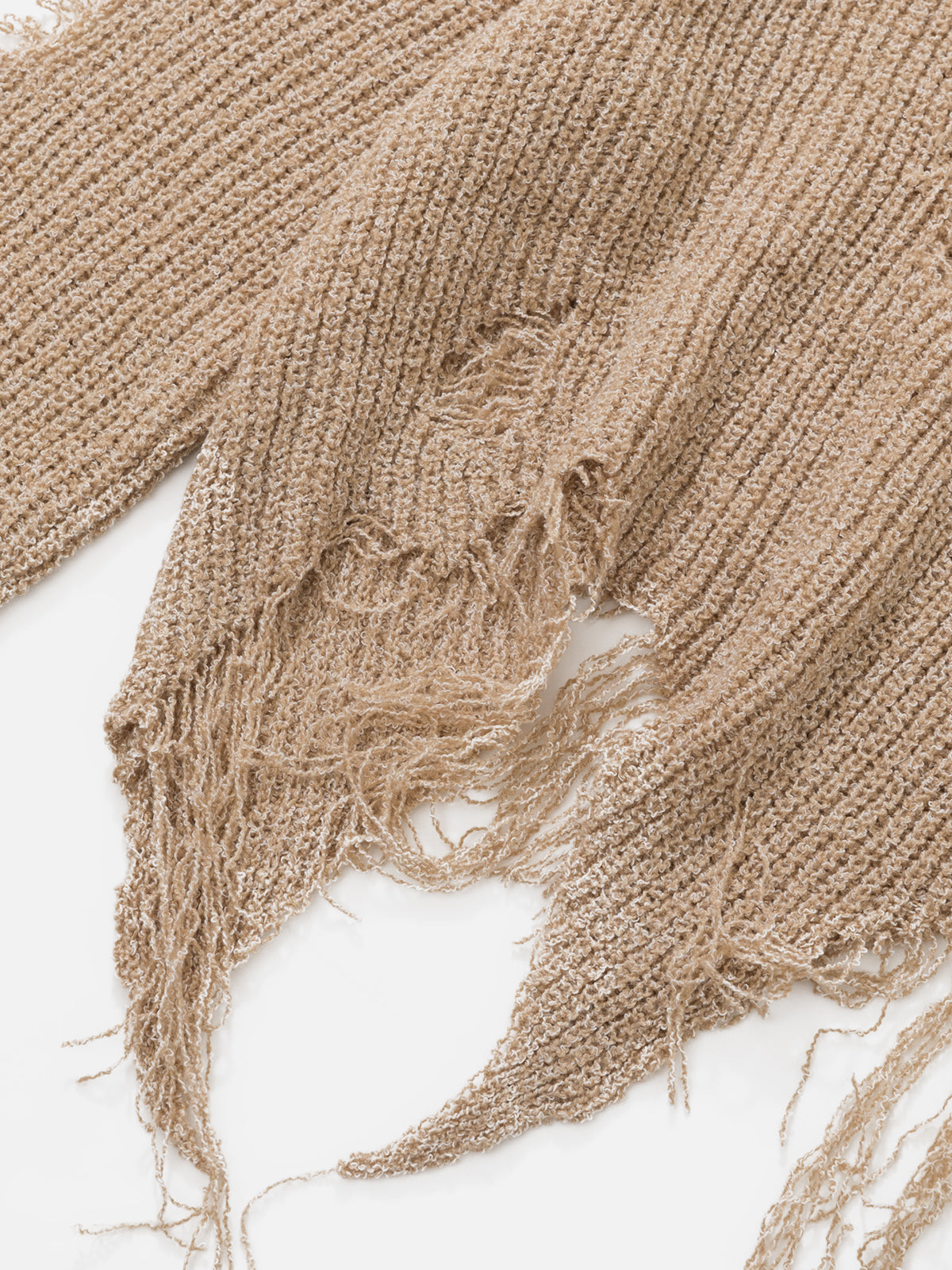 Worn-in but never worn out — this Irregular Distressed Sweater is all about raw energy and anti-perfection. Featuring an asymmetrical knit structure and deliberate distressing throughout, it fuses grunge rebellion with high-street sensibility.