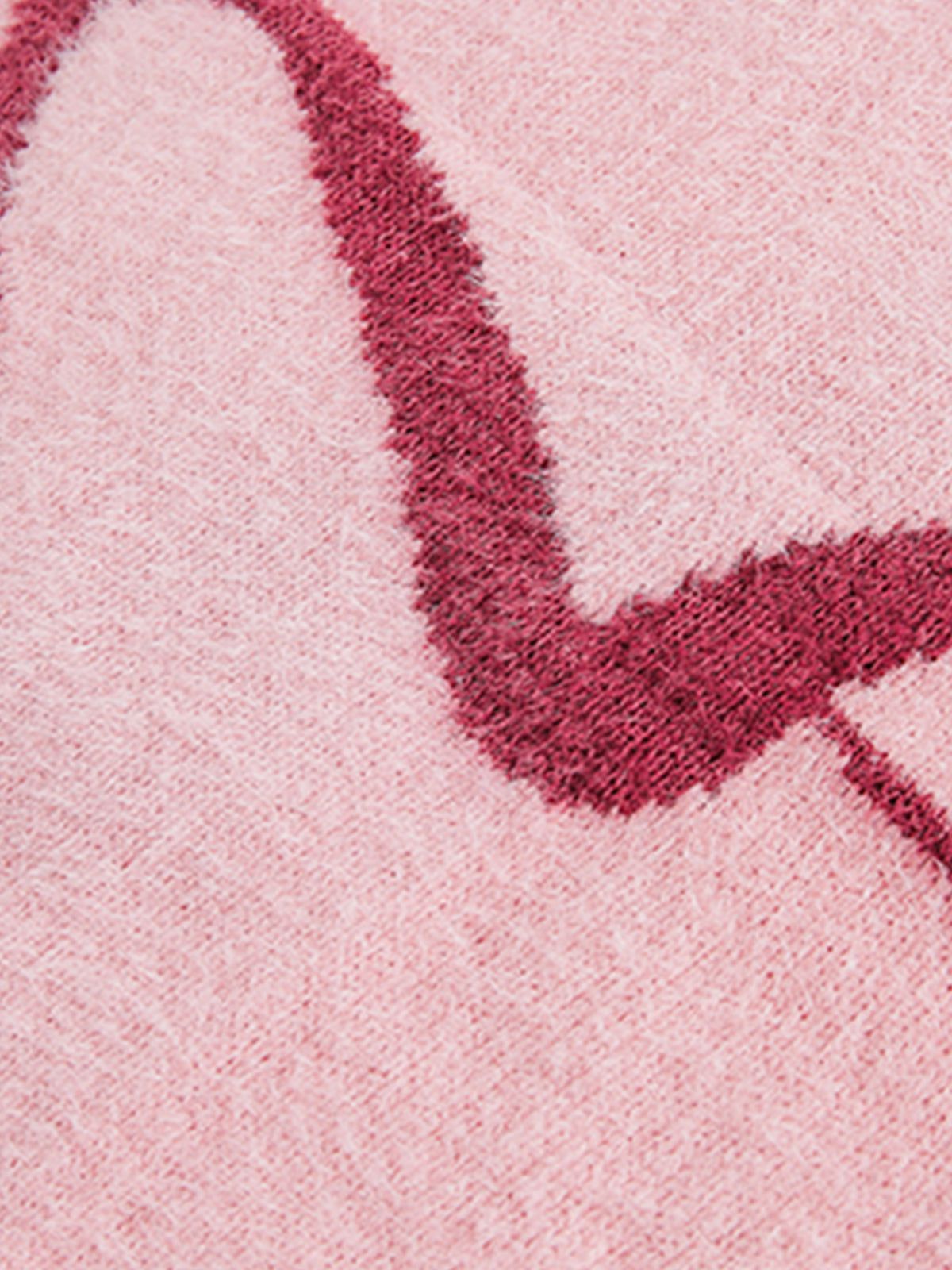 The soft, fuzzy texture exudes a warm, inviting feel. A bold, artistic heart graphic sweeps across the front, adding a playful, yet elegant touch. Ribbed cuffs and hem ensure a comfortable fit, perfect for cozy layering.