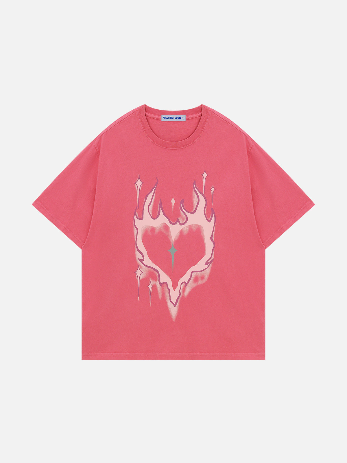 Look hot in the Fvshya Love Flame Print Tee! This soft cotton tee is washed for a relaxed fit that's sure to keep you cool under any kind of heat. Rock the stylish love flame print and get ready to spark an unforgettable look!