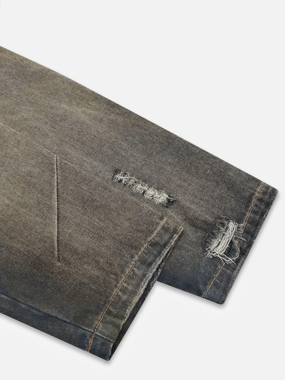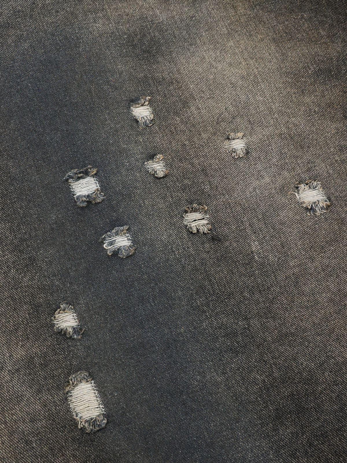 Clothing details: Distressed.
