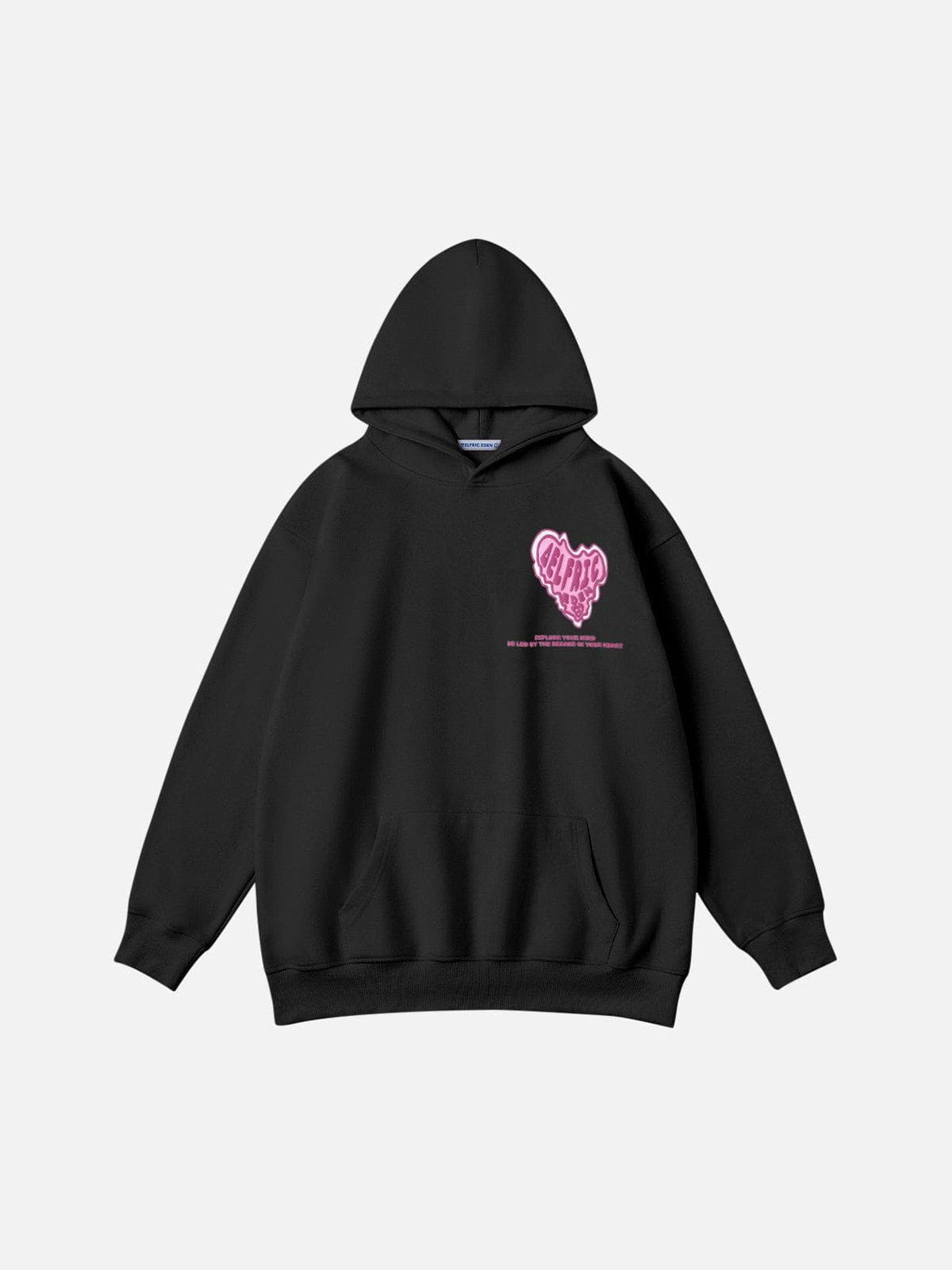 Fvshya Pink Heart Graphic Pullover Hoodie