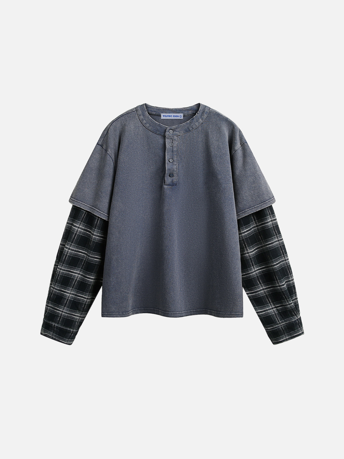 Fvshya Plaid Two Layer Washed Long Sleeve Tee