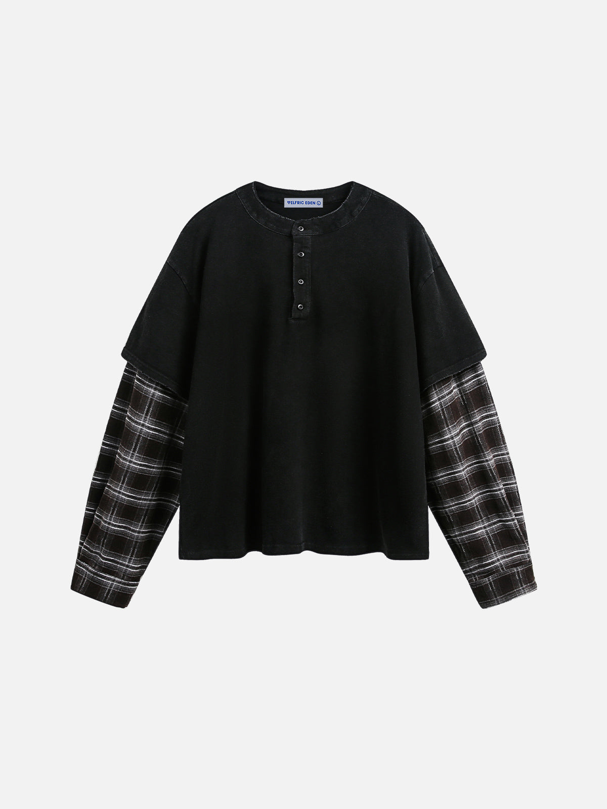 This tee reinvents the classic with a buttoned crew neck, layered-look sleeves and plaid patchwork that adds character and cuts the monotony. The cropped silhouette is smartly balanced by bold design lines, keeping your style sharp and intentional.