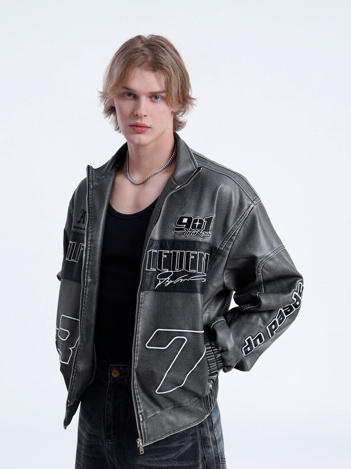 Take your racing style to the next level with the Fvshya Embroidery Washed Racing Jacket. The faux leather makes you look as fast as you are, while the embroidery gives you the edge you need to win the race! It's perfect for both the track and the street. Speed never looked so good!