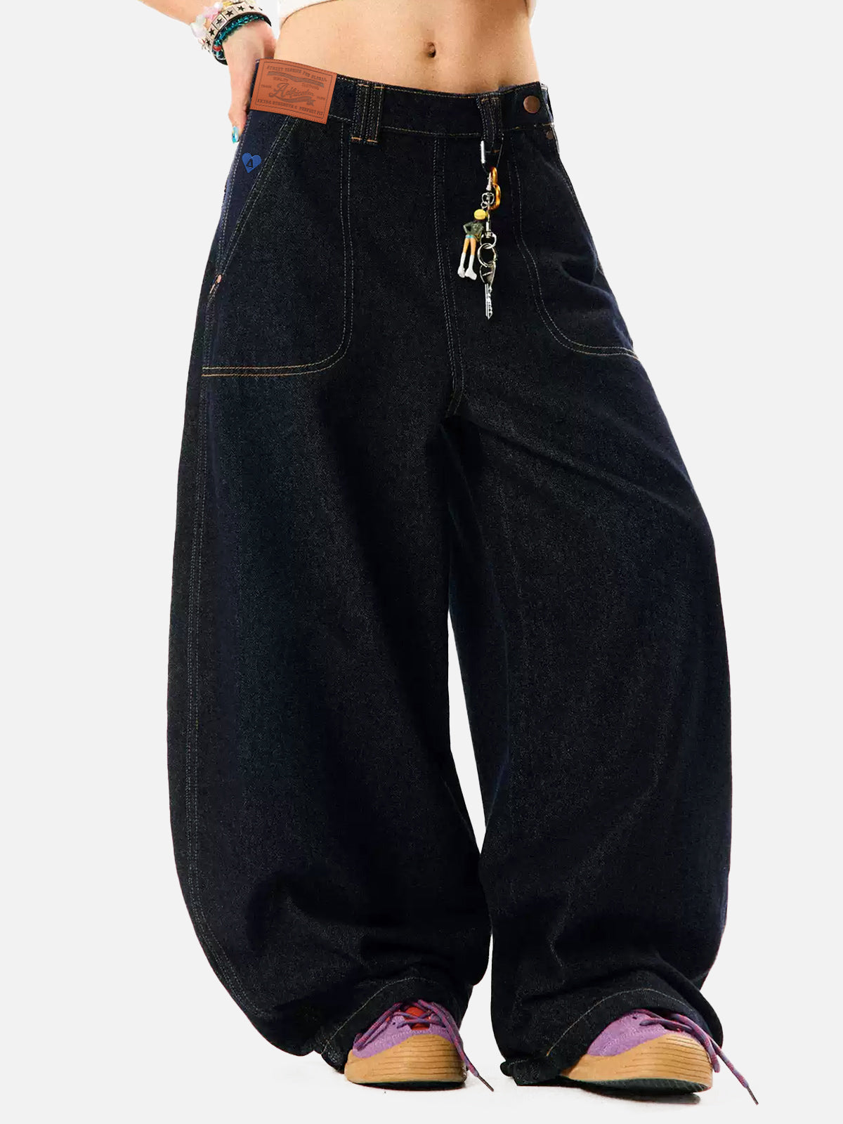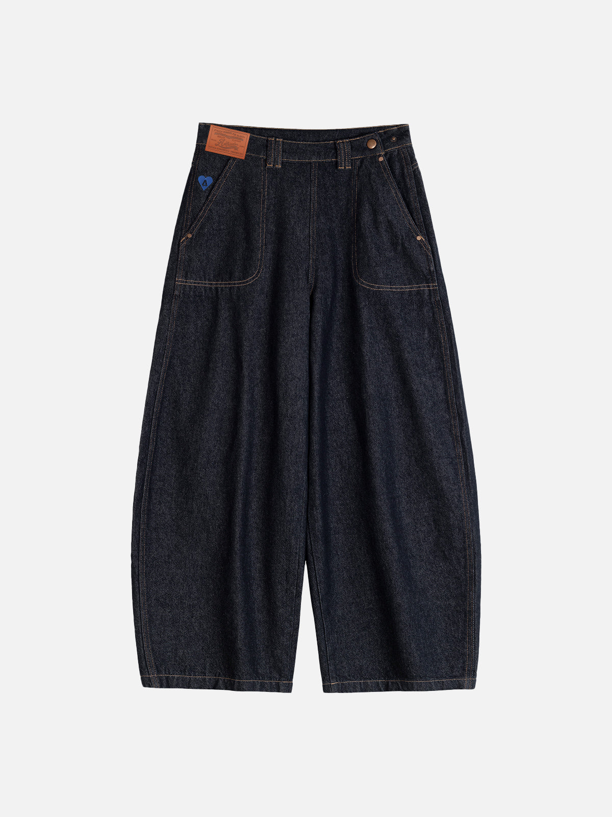 Built with bold volume and raw edge energy, these barrel jeans are anything but basic. Featuring a curved, ultra-baggy silhouette and a clean raw-wash finish, they bring major shape and streetwear attitude to your denim rotation.
