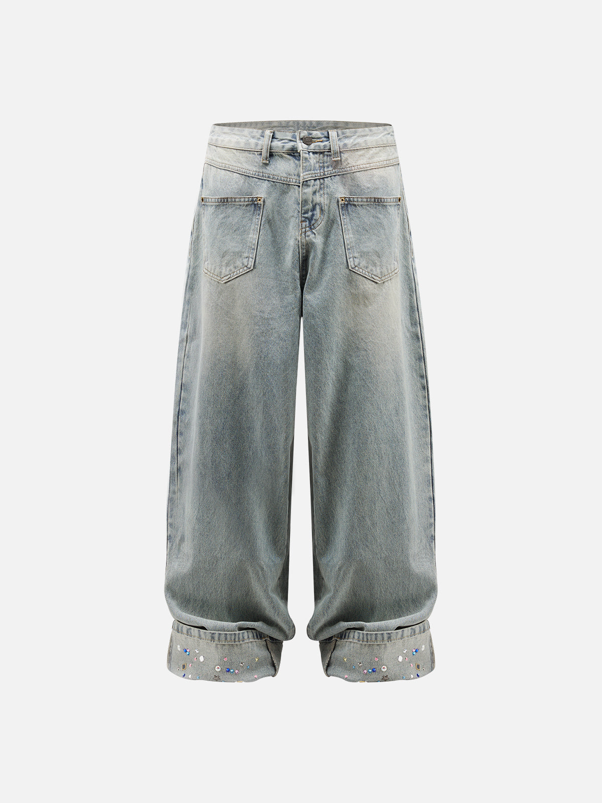 Sparkle with every step in our Rhinestone Cuffed Jeans! These eye-catching denim showstoppers feature glittering rhinestone details that catch the light as you move. With a comfortable cuffed design that's equal parts fun and fashion-forward, these jeans are ready to jazz up your casual looks or steal the spotlight on night outs. Who said denim can't be dazzling?