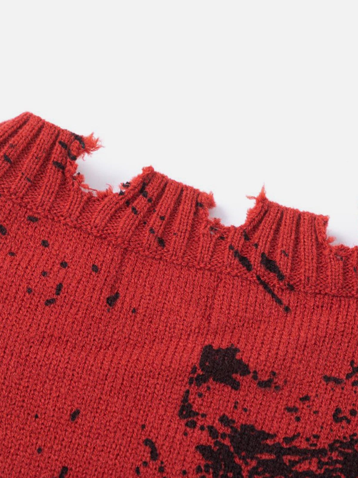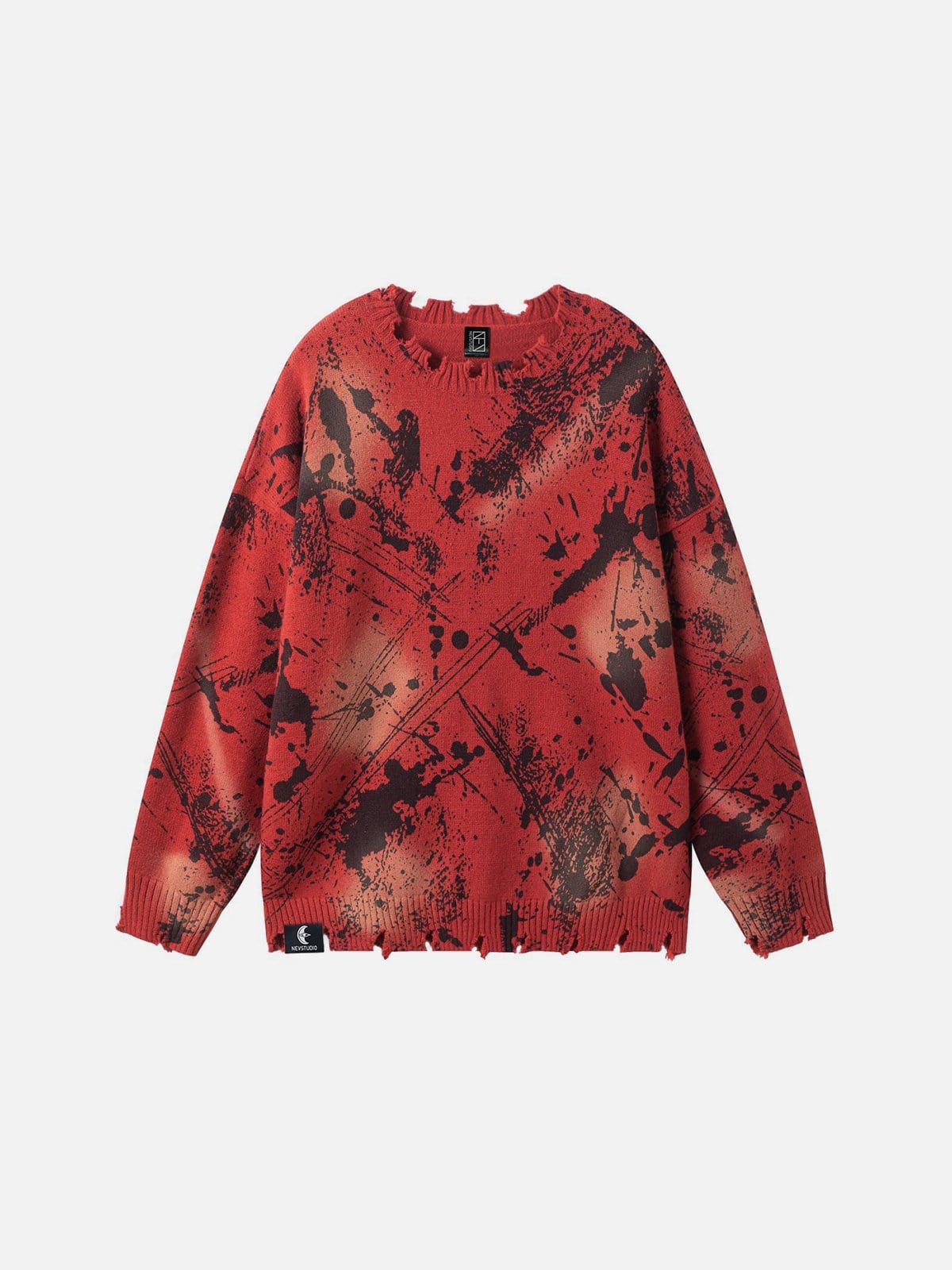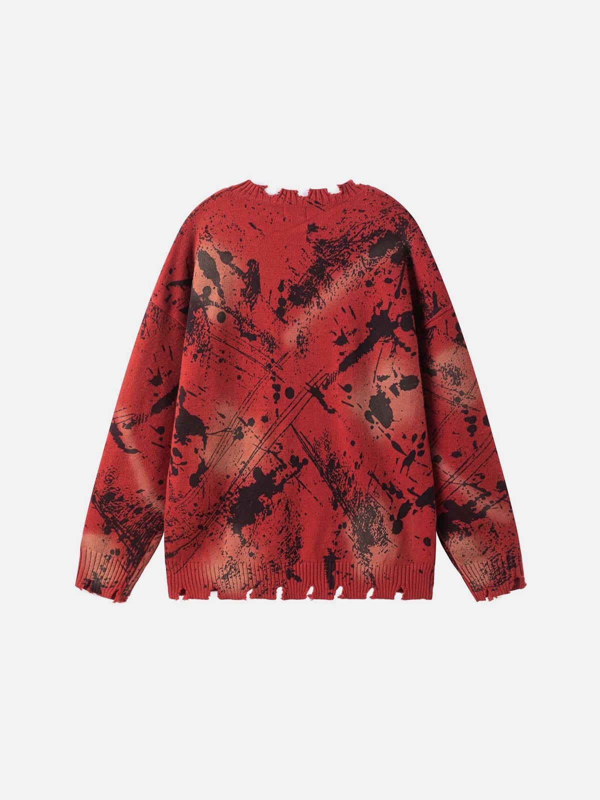 Fvshya Splash-Ink X-Shape Distressed Sweater