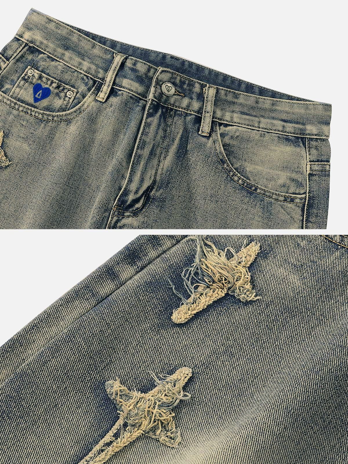 Introducing our stunning Star Embroidered Washed Jeans. Experience a flawless blend of delicate star embroidery and a regular fit, crafted to perfection. Elevate your style with the distressed wash that adds an edgy touch. Step into fashion-forward elegance today!