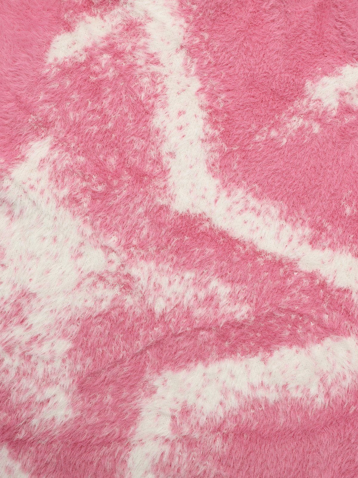 This pink sweater features an abstract star graphic for a bold, playful vibe. It is made from soft, fuzzy fabric that adds warmth and texture. The relaxed fit ensures all-day comfort and effortless layering. This is a standout piece to elevate casual looks.