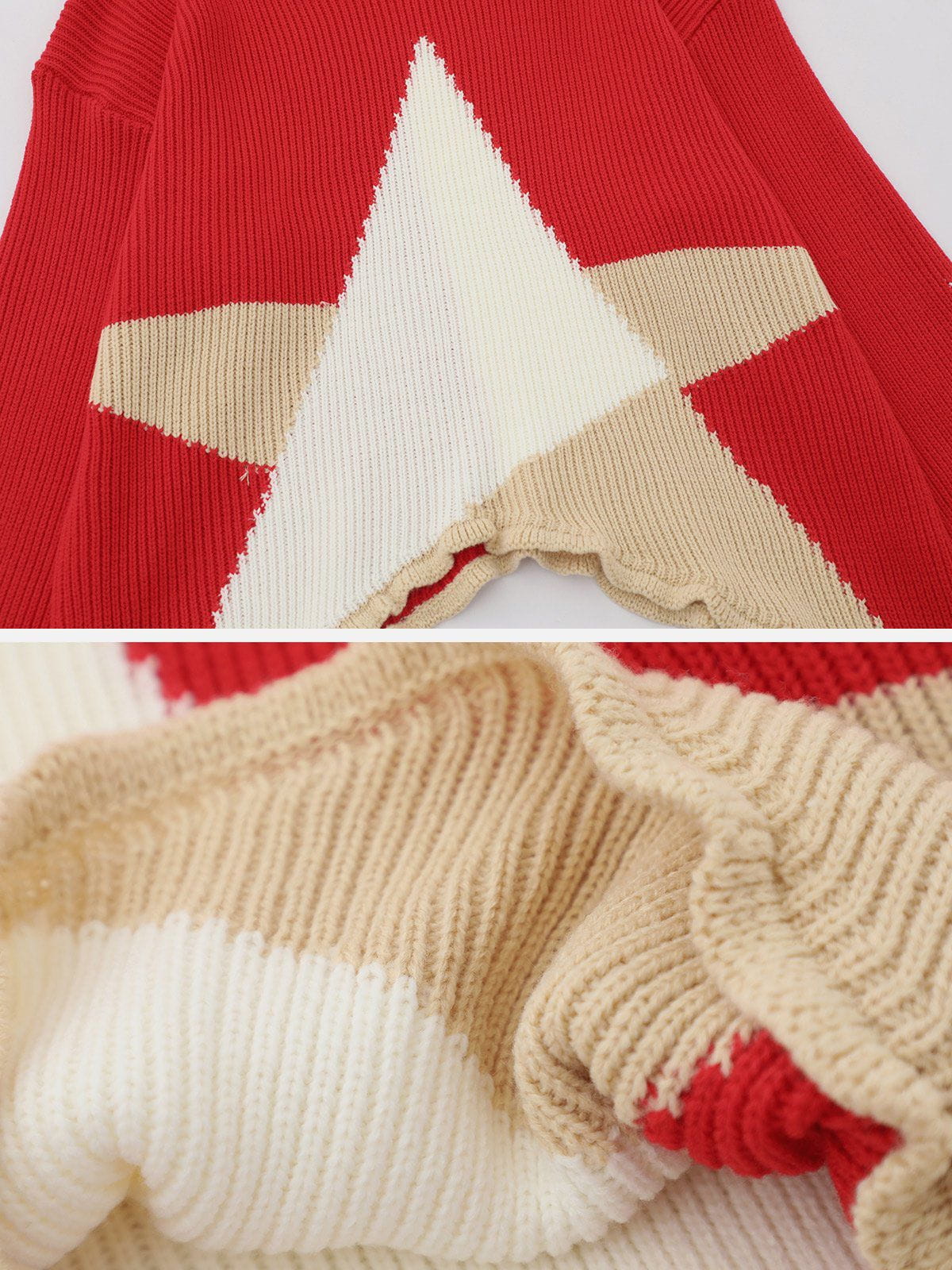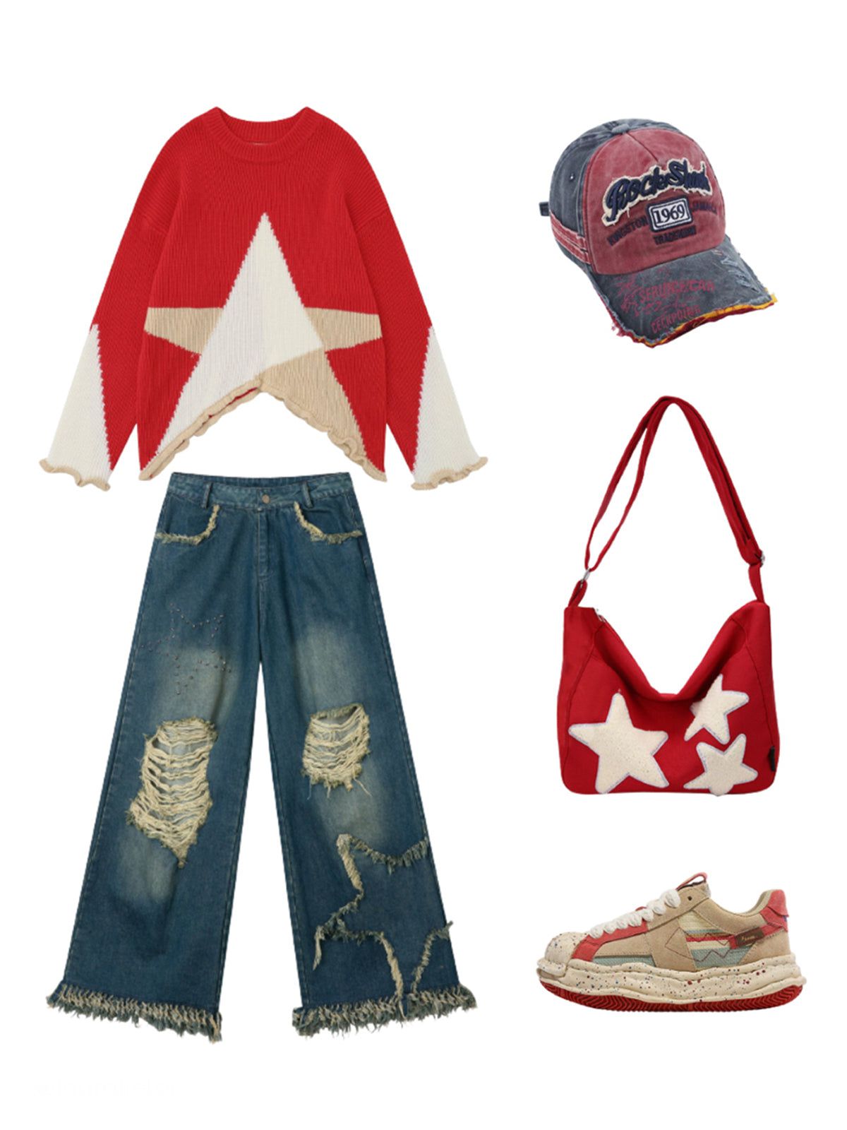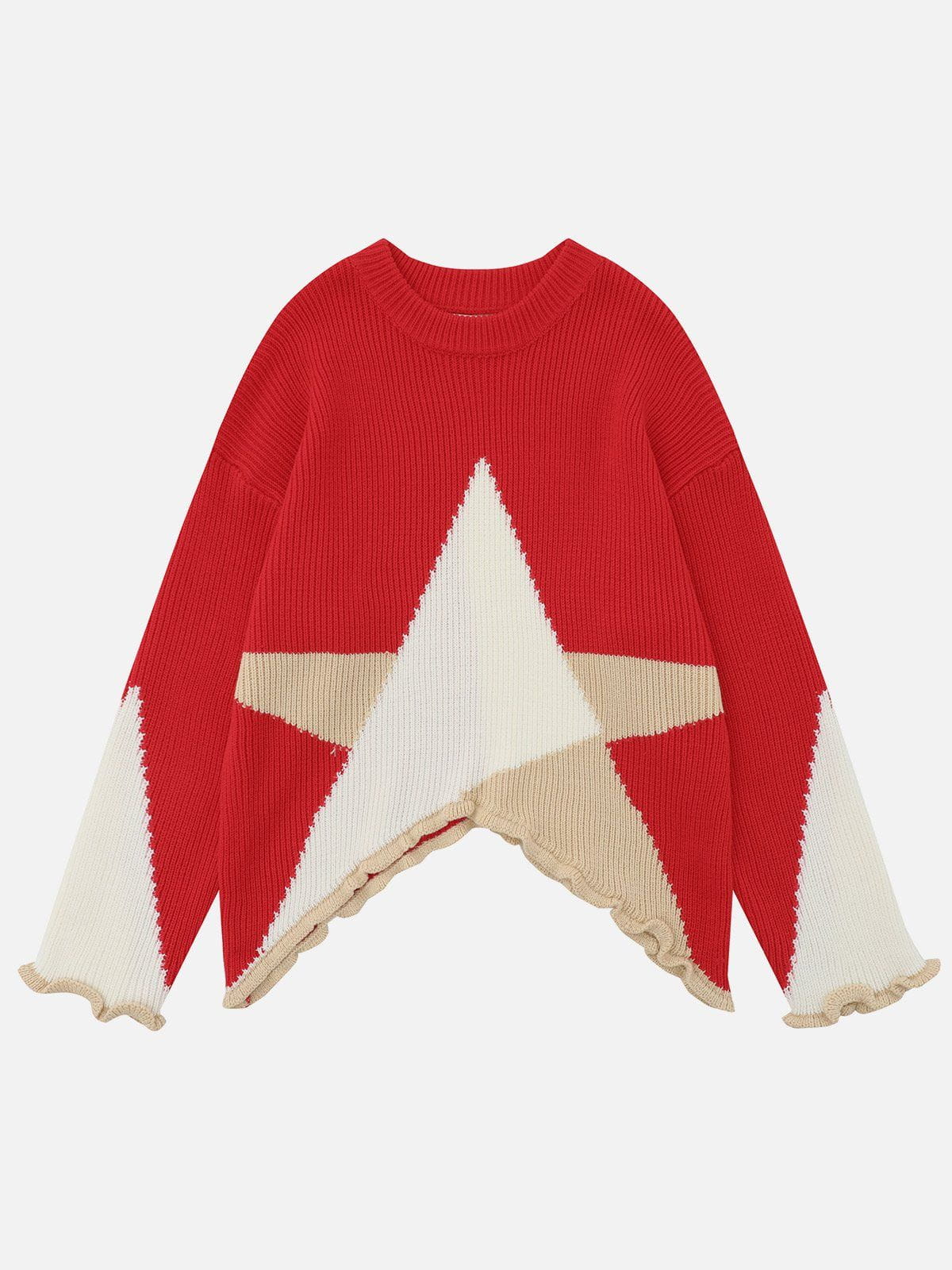 The Star Hem Sweater is a unique and stylish choice in outerwear. Decorated with bright stars along the edges of the hem and wave-style cuffed sleeves, this eye-catching sweater makes a bold statement.💕