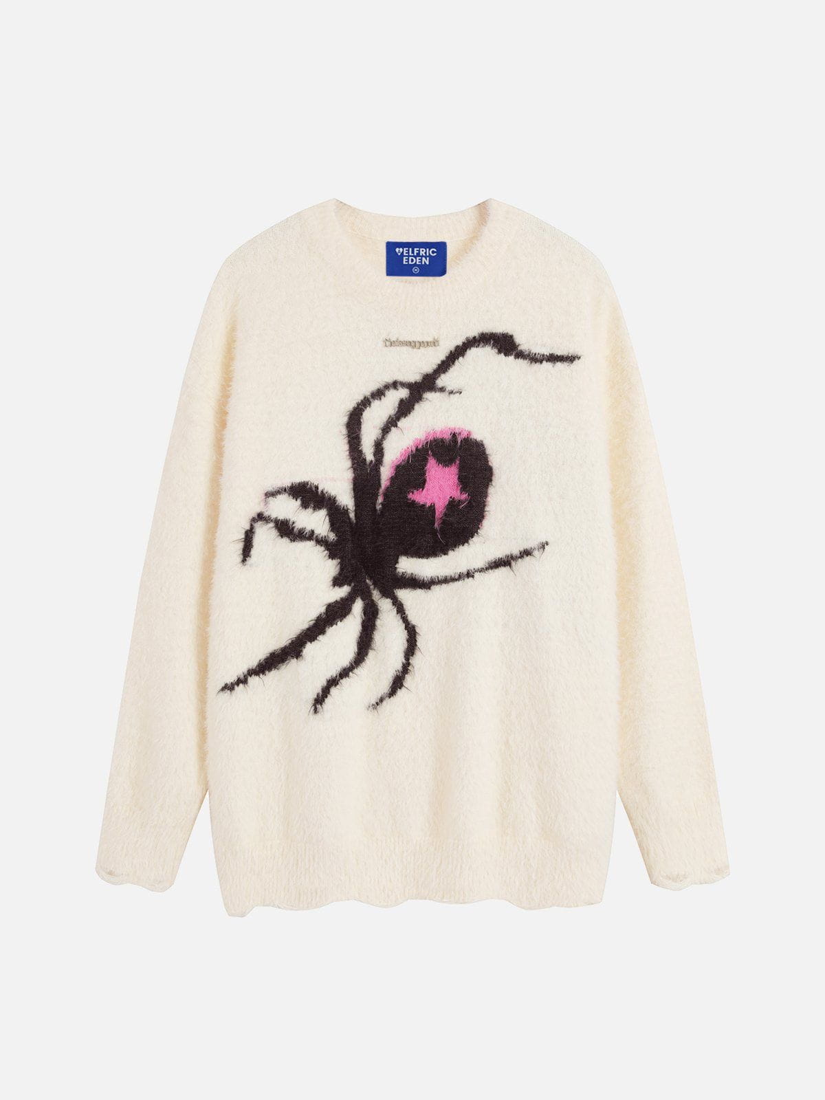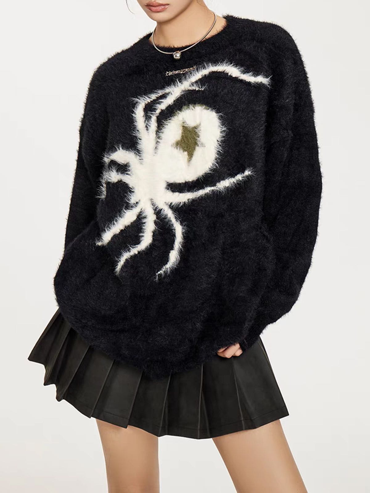 This sweater boasts a giant star-printed spider as its design element, with a red and black web looming at the back, adding an extra touch of cutesy mystery!