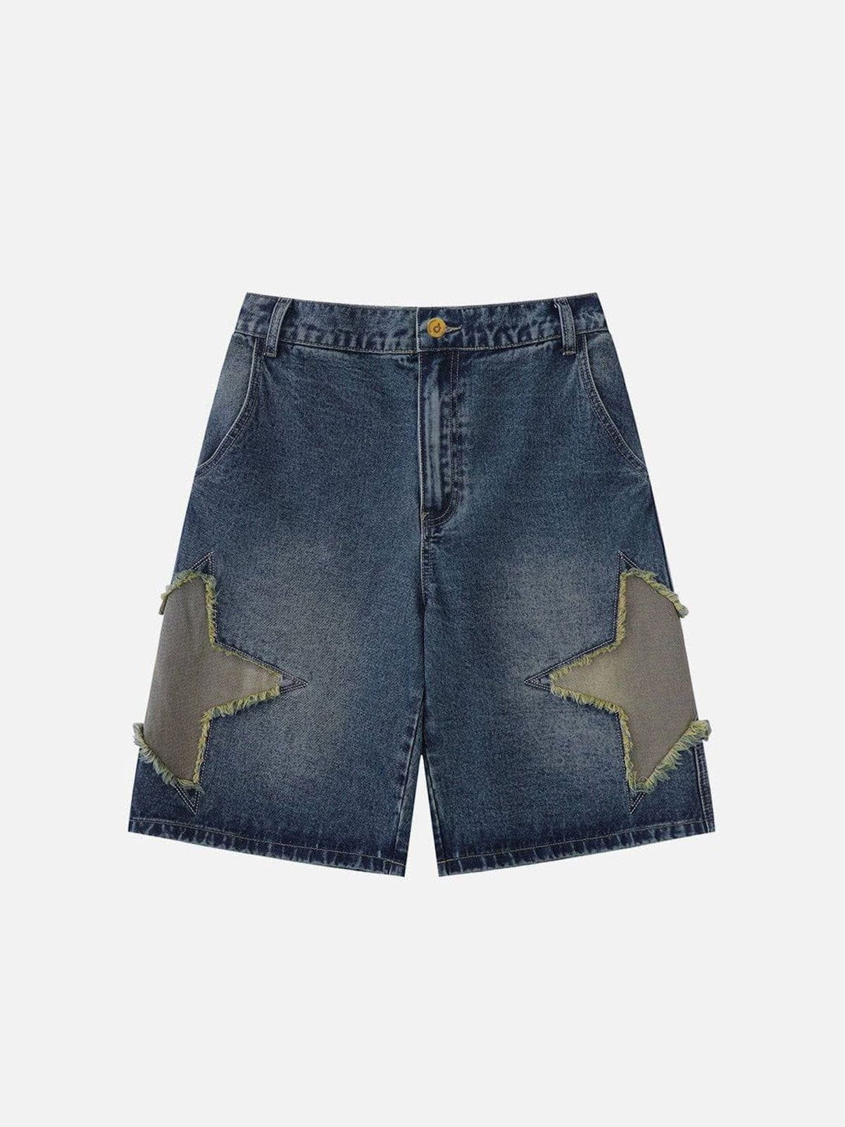Get ready to blast off in these Fvshya Star Tassel Patch Gradient Denim Shorts! Featuring a constellation of stars stitched onto distressed denim, these shorts will have you feeling out-of-this-world cool. Perfect for adding a touch of cosmic flair to any summer look.