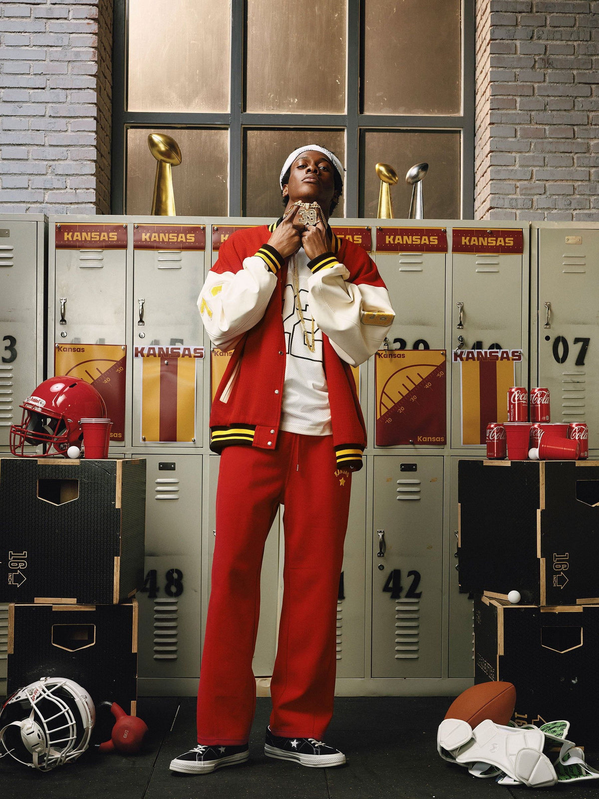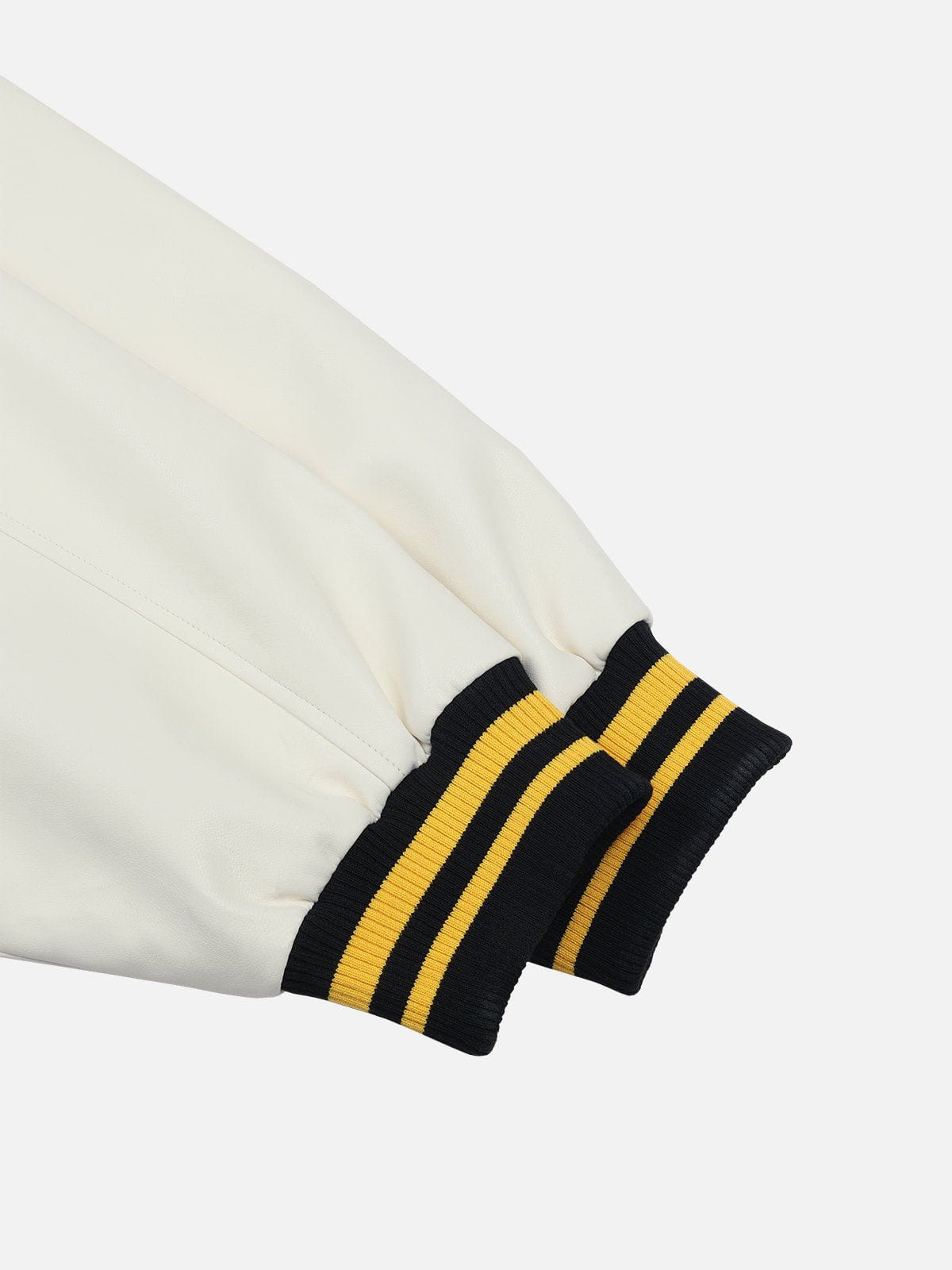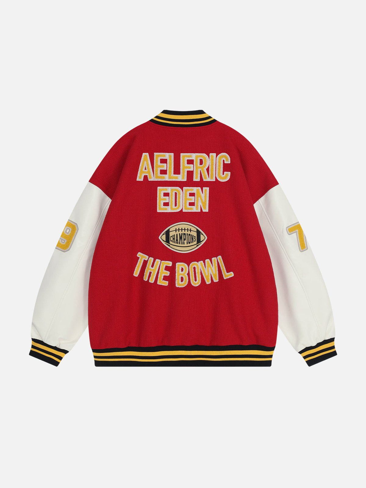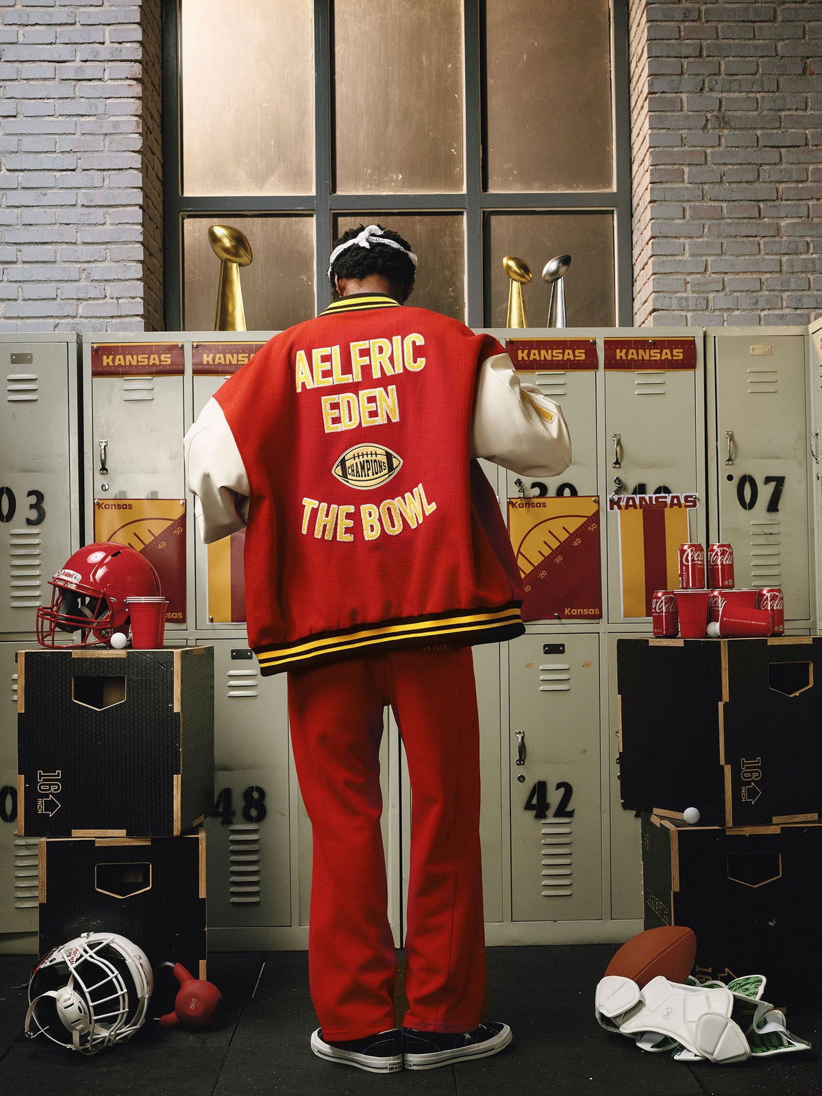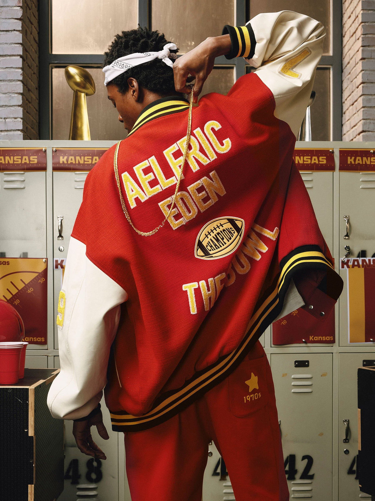 Inspired by vintage varsity aesthetics, this jacket pays homage to the golden era of sports. It features bold color-blocking, Eden Star Print, and oversized player numbers. Designed in a loose-fit silhouette, it combines comfort and style, making it a standout piece for athleisure lovers.