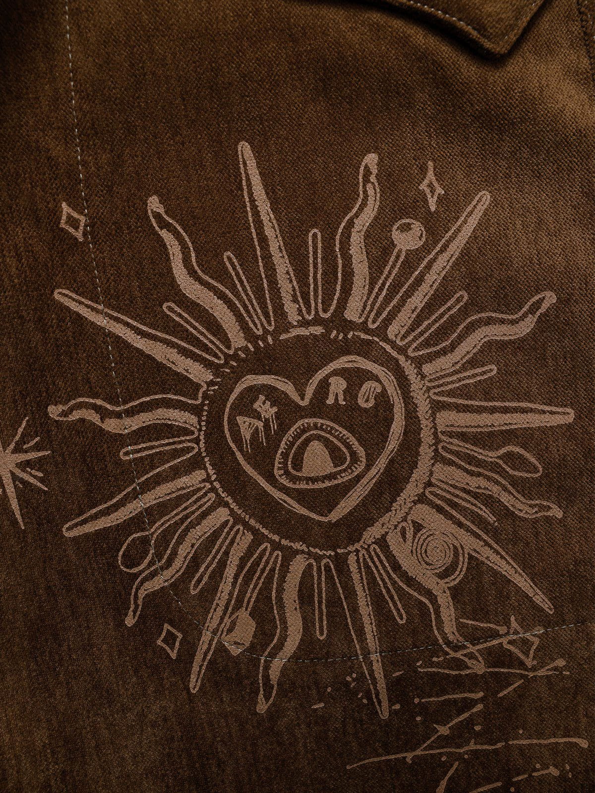 Slip into our retro-hued trousers, embellished with a quirky print and the iconic Neverland crest. Featuring a sun with eyes, these trousers give you a unique wear experience by creating a one-of-a-kind texture.