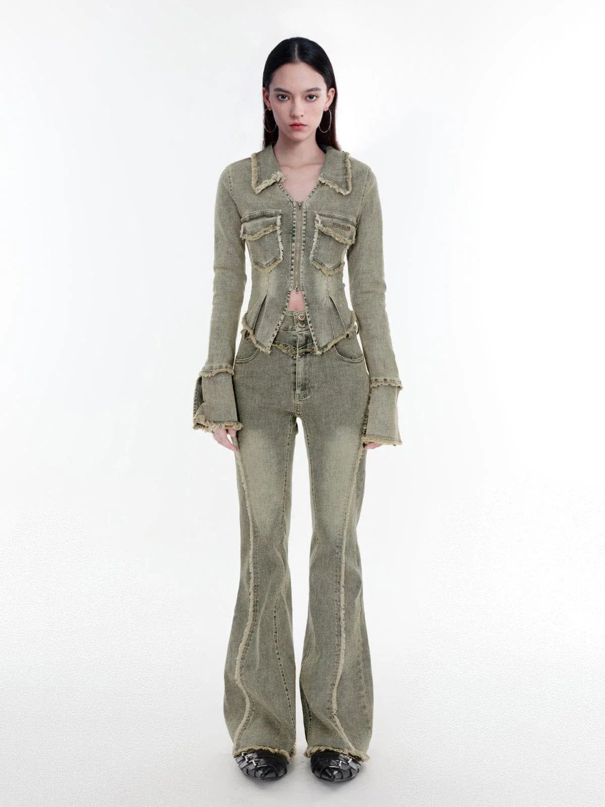 These Vintage Fringe Star Jeans are your ticket to a classically cool & retro vibe! Slim-fitting and flared out, you'll rock the ultimate Y2K look. Put a star in your step and get your groove on!