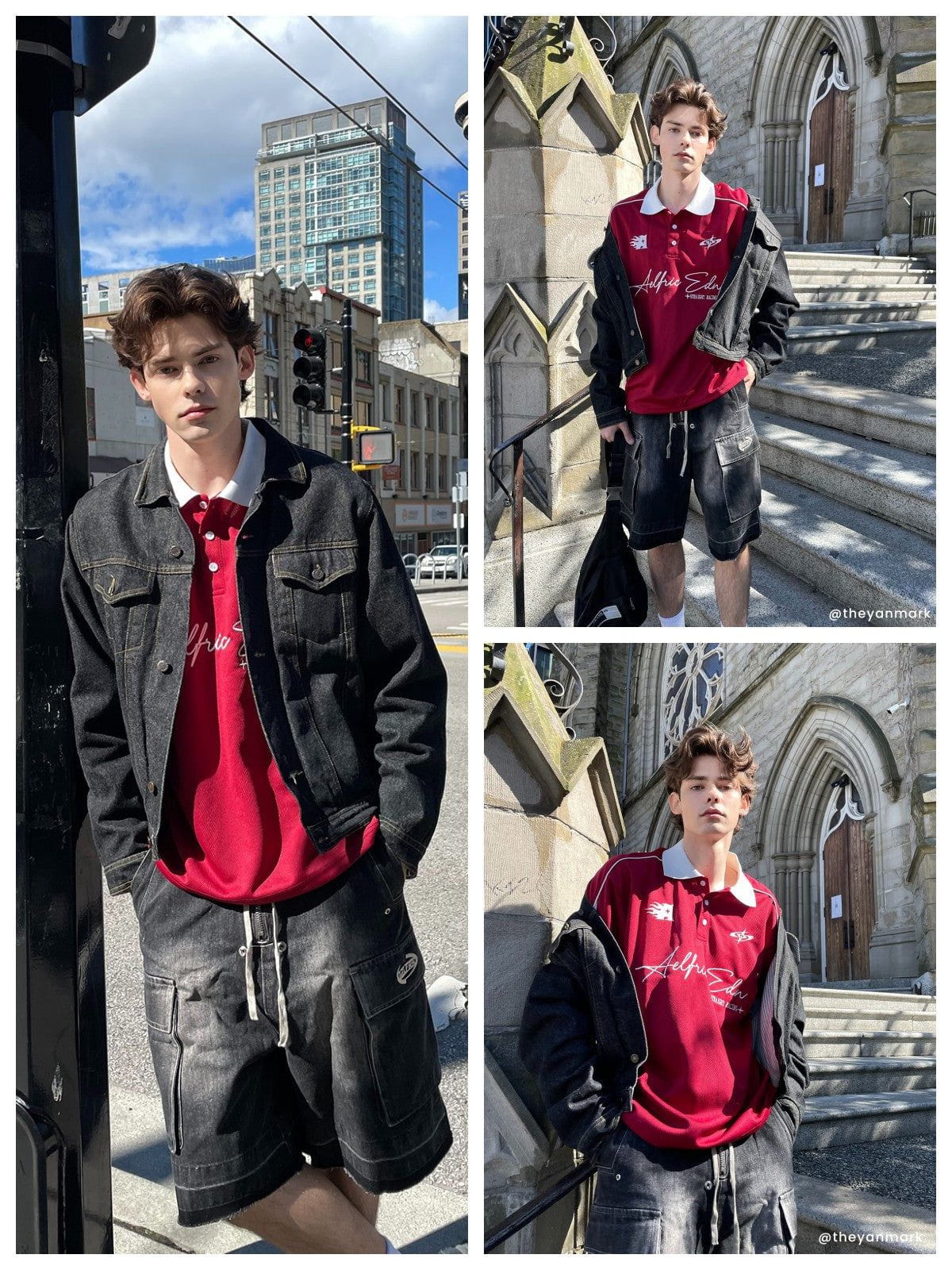 This collegiate-style garment features a moderate saturation of red, exuding a classic yet understated aesthetic. Its simple design evokes a nostalgic atmosphere, recalling fond memories of days gone by while maintaining a sense of contemporary fashion taste.