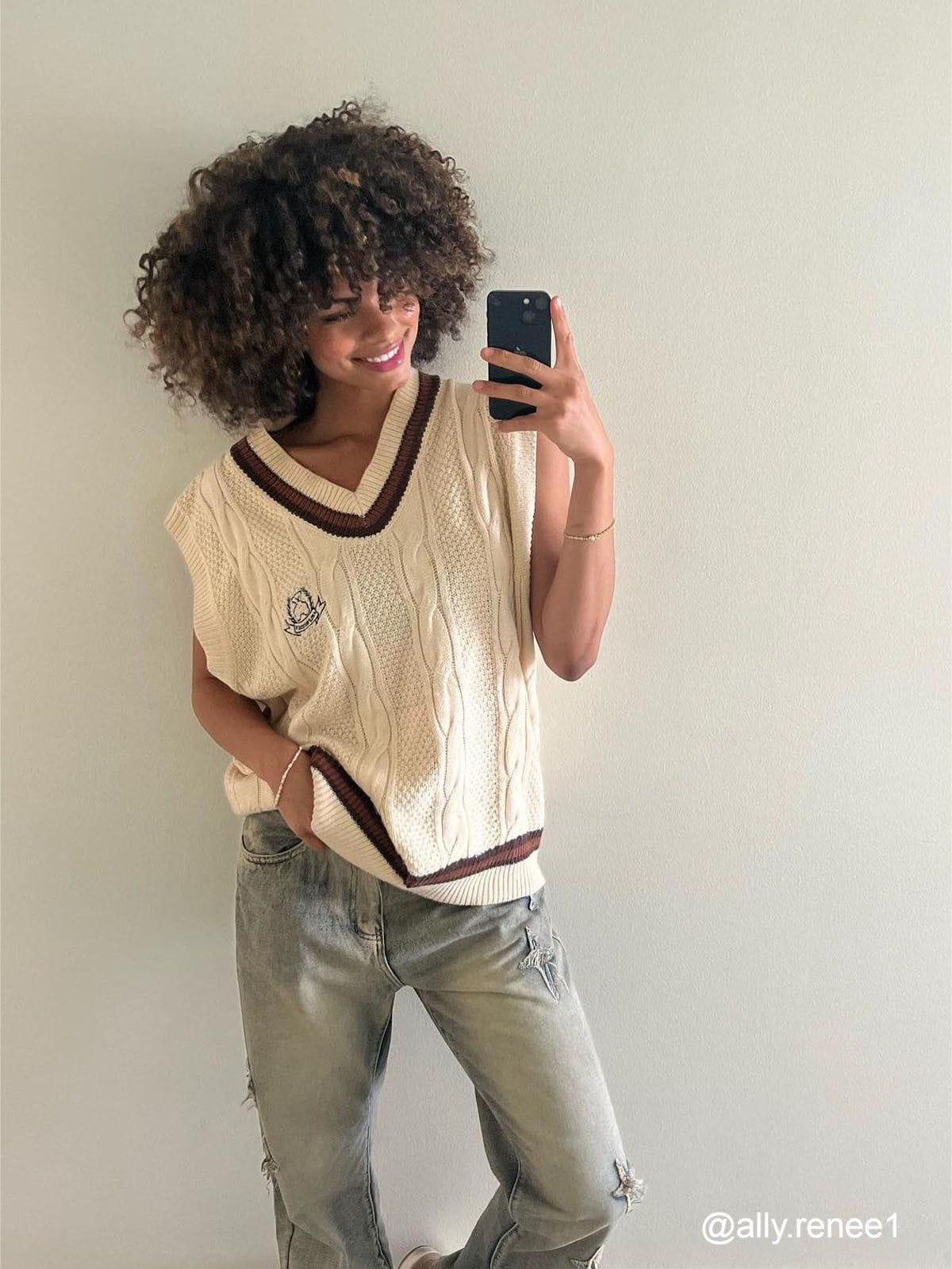 Fvshya Vintage Preppy Style Knit Sweater Vest