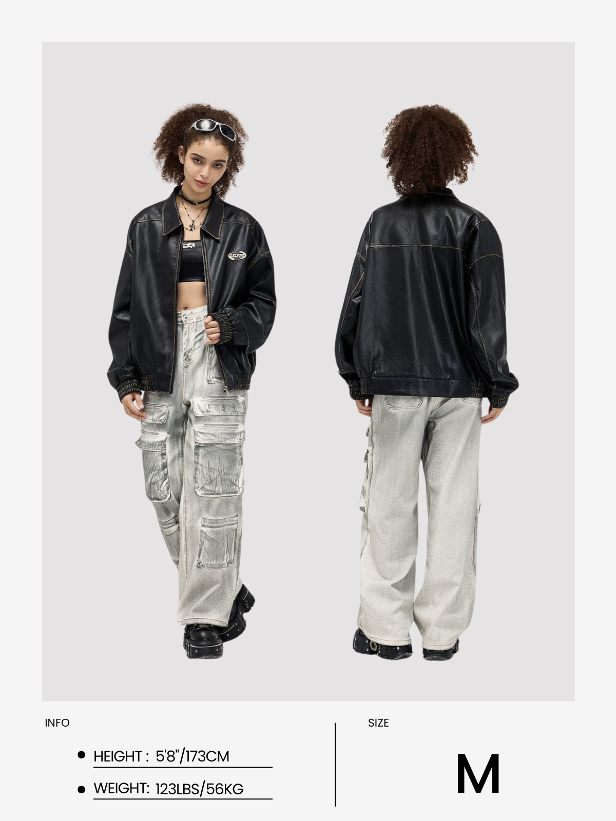 Introducing the Fvshya Vintage Washed Faux Leather Jacket. Made with a unique washed faux leather material, this jacket offers both style and comfort. Perfect for any occasion, its vintage look will make you stand out while providing a luxurious feel. Elevate your wardrobe with this must-have piece.