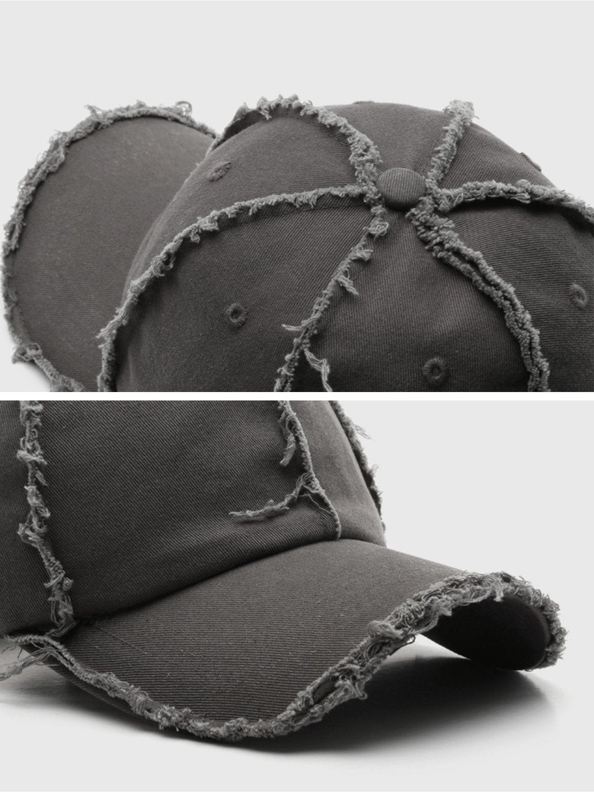 This Vintage Washed Fringe Cap adds a timeless look to any outfit. It has a raw edge design for a classic, laid-back style that will remain fashionable for years to come. Perfect for everyday wear or special occasions.